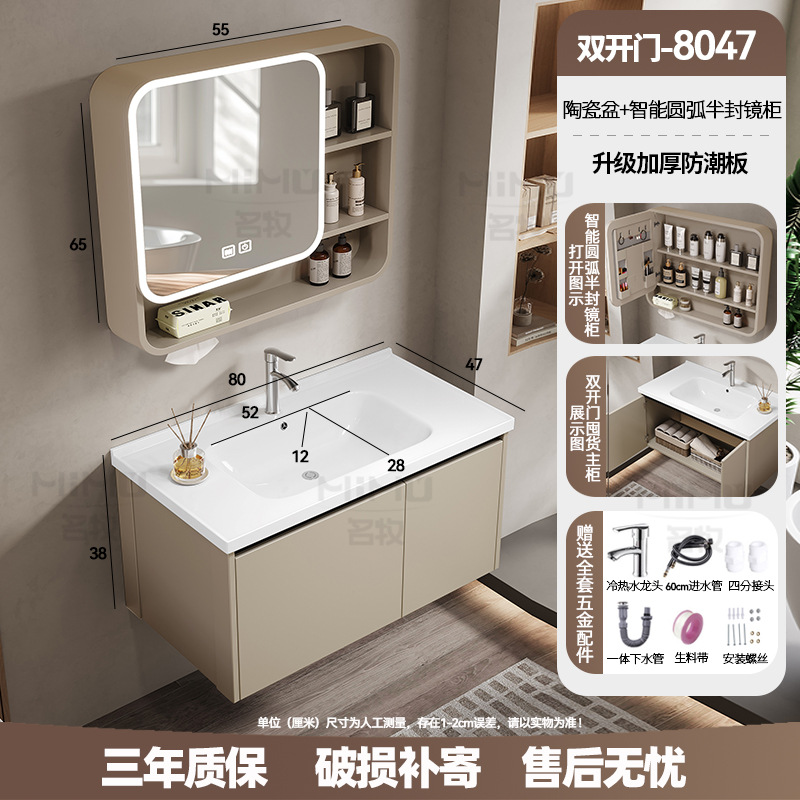 80 × 47cm (ceramic basin) double door-full set + smart beauty mirror cabinet