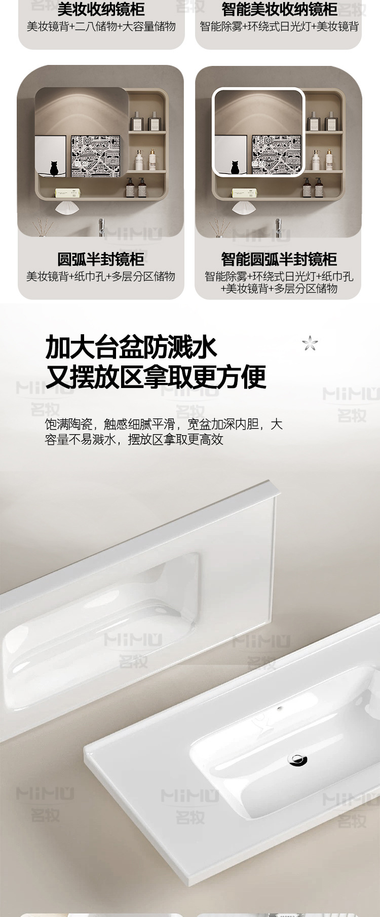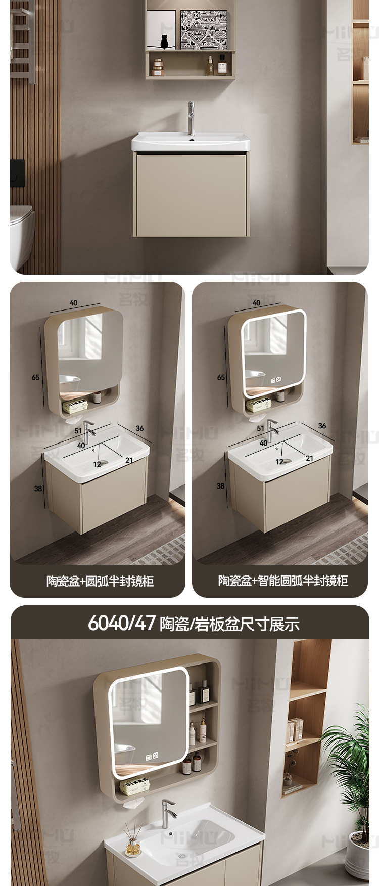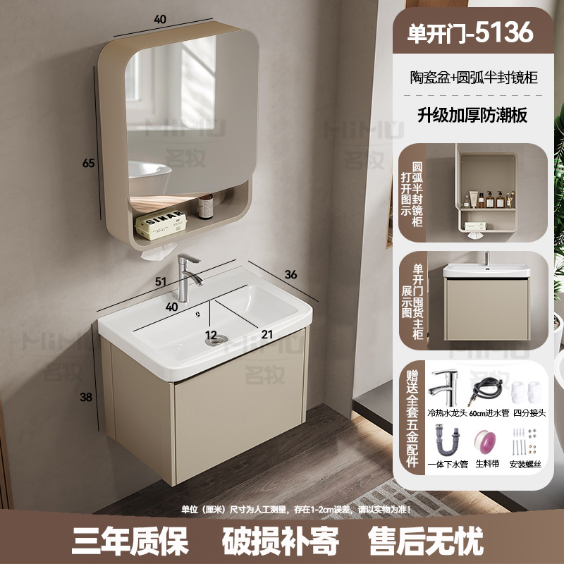 51 × 36cm (ceramic basin) single door-full set + ordinary arc half sealed mirror cabinet