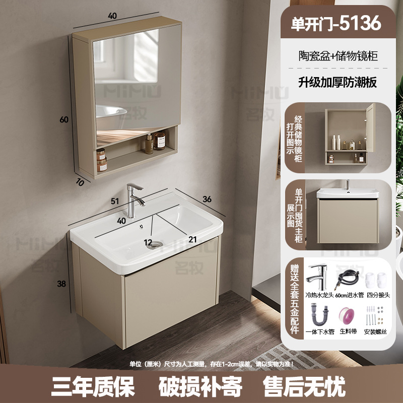 51 × 36cm (ceramic basin) single door-full set + mirror cabinet