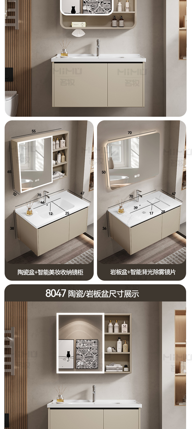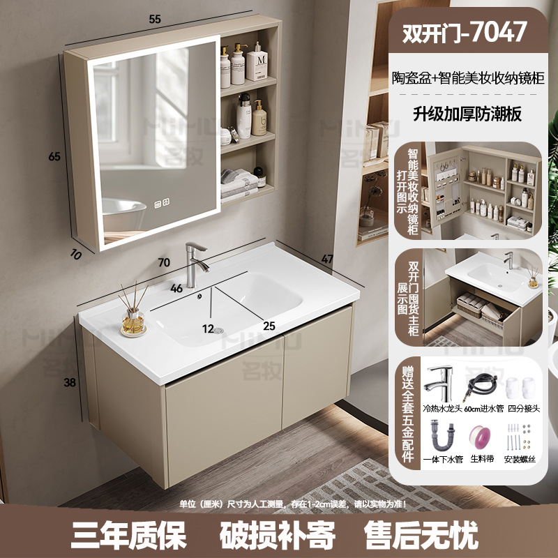70 × 47cm (ceramic basin) double door-full set + smart beauty mirror cabinet