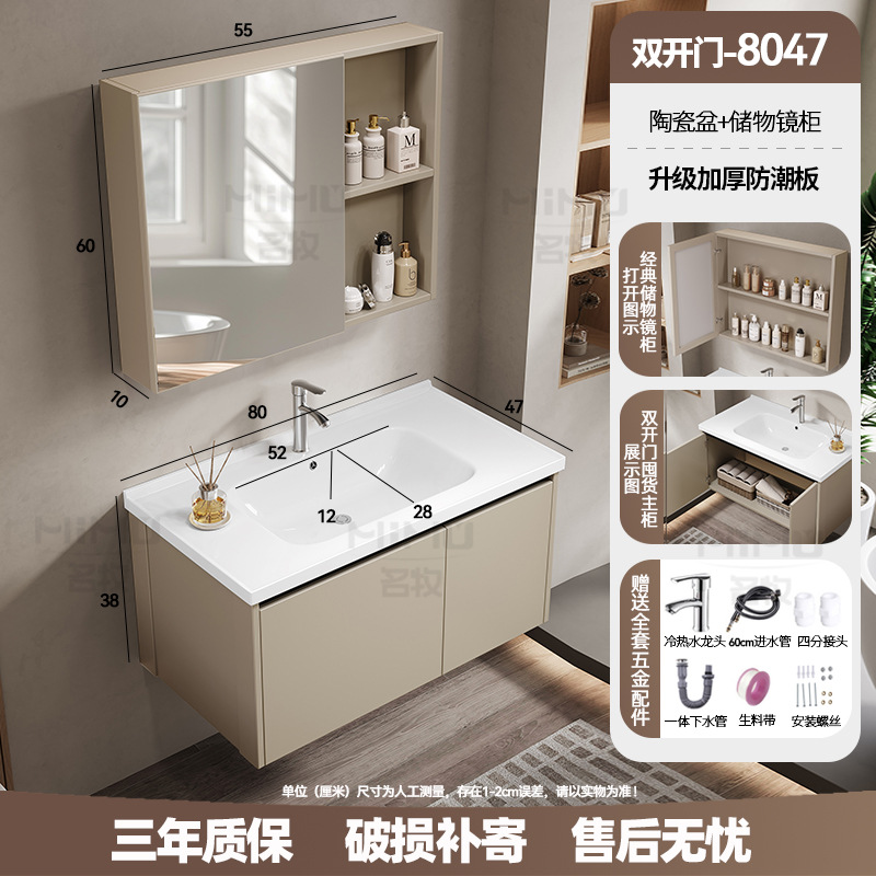 80 × 47cm (ceramic basin) double door-full set + ordinary beauty mirror cabinet