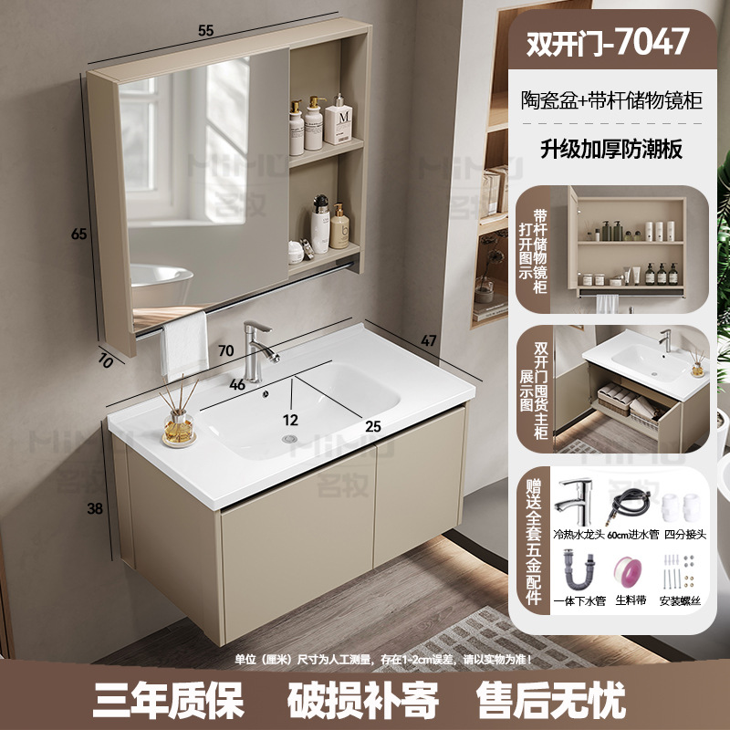 70 × 47cm (ceramic basin) double door-full set + ordinary beauty mirror cabinet