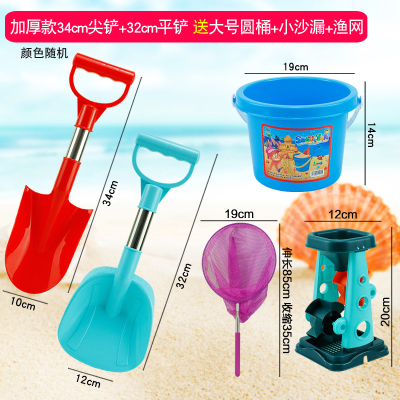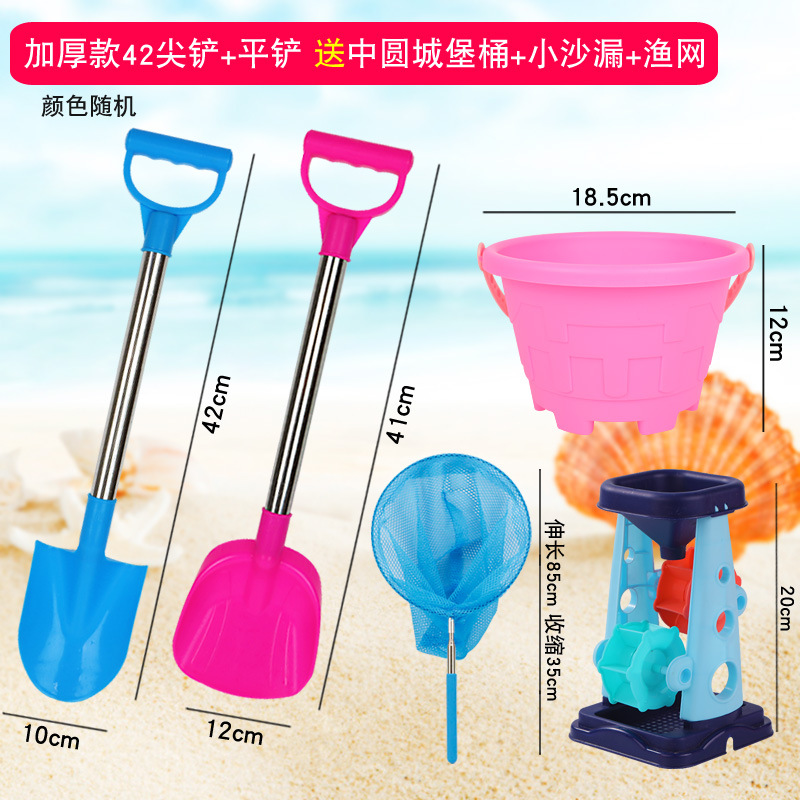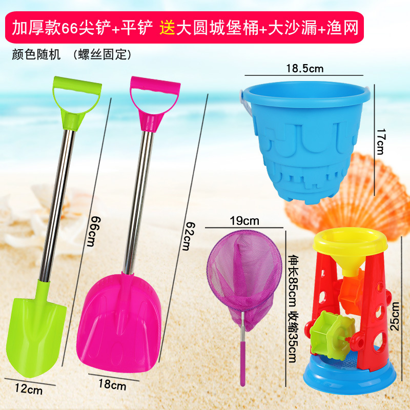 thickened 66 pointed shovel + flat shovel get big round castle bucket + big hourglass + fishnet