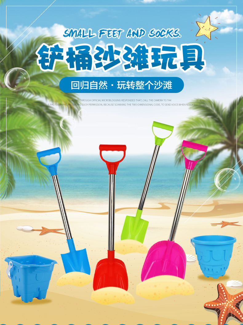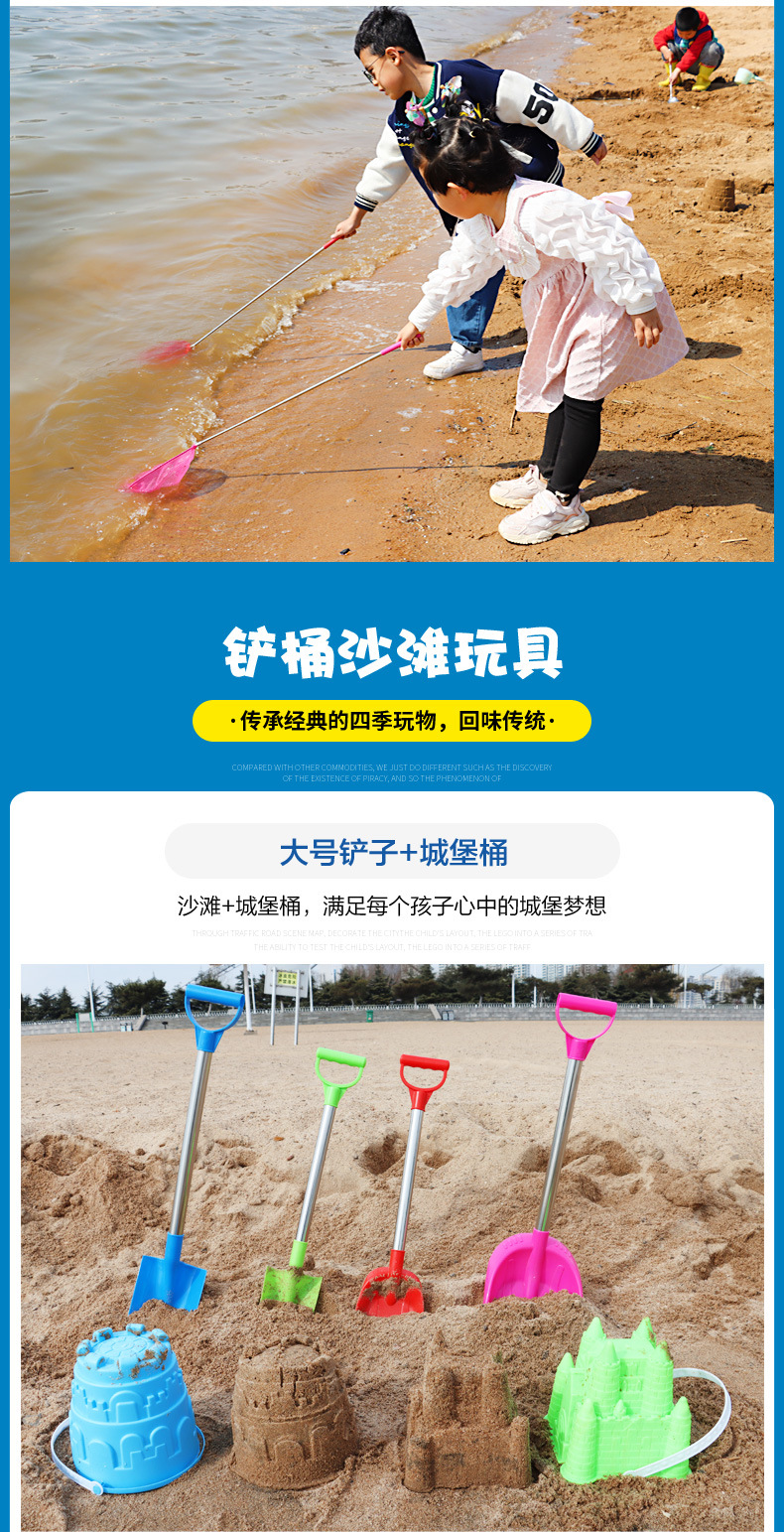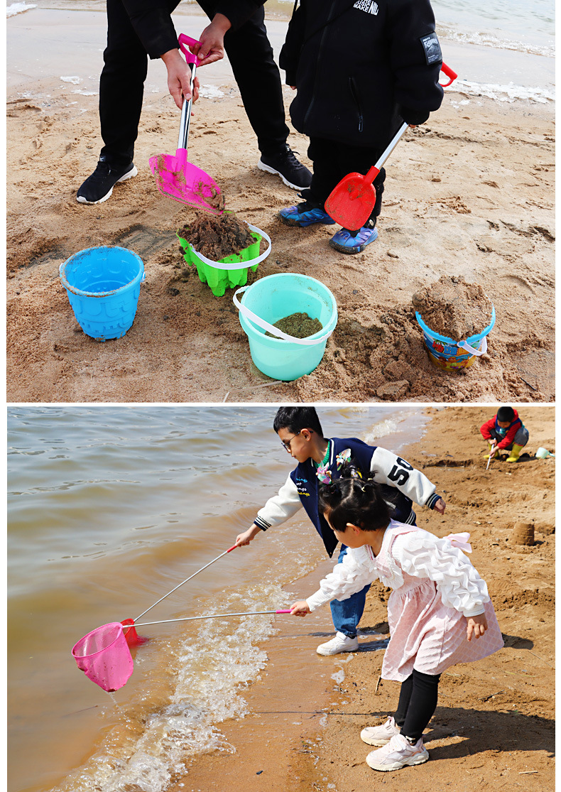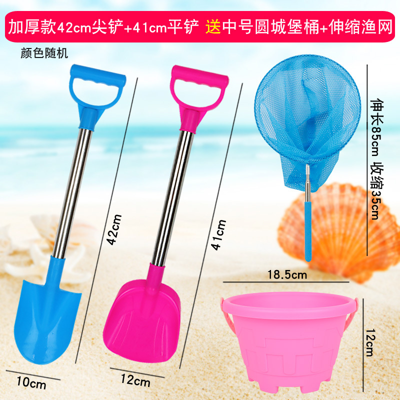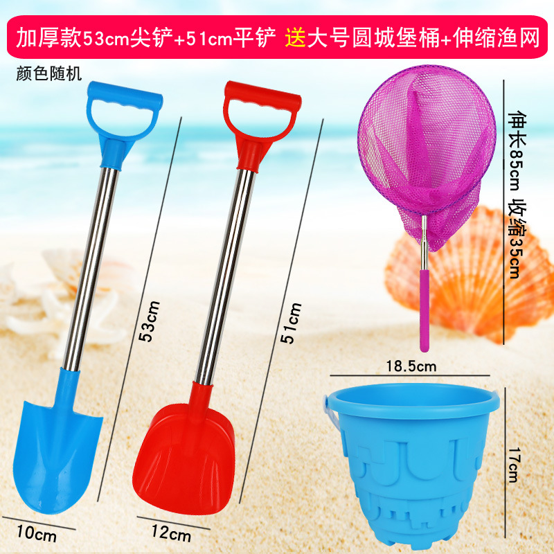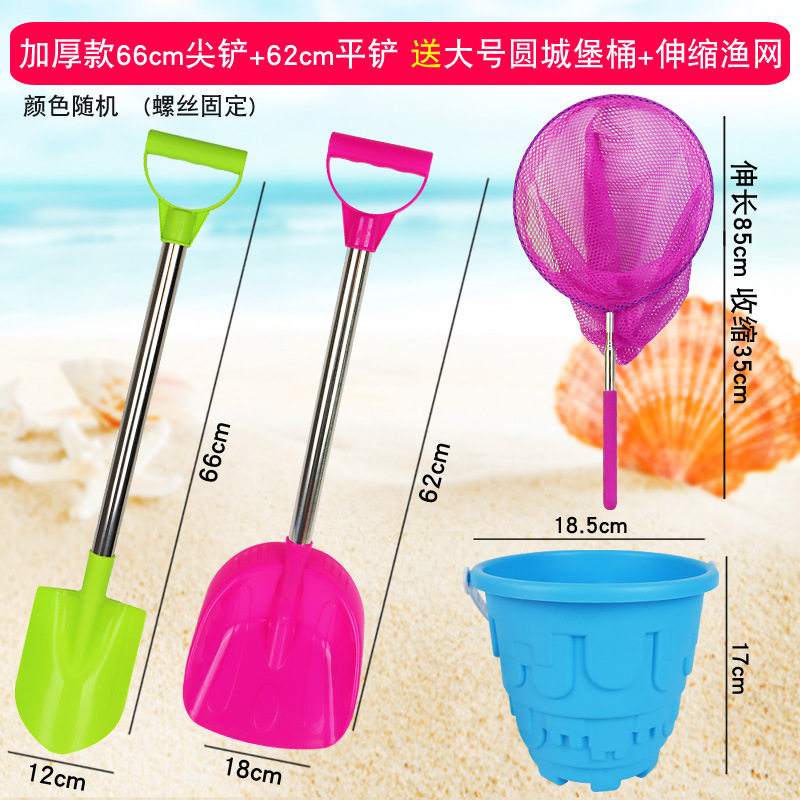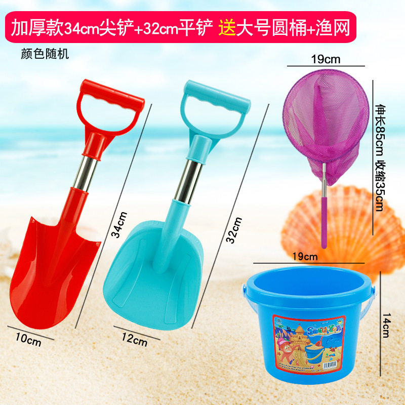 thickened 66 pointed shovel + flat shovel get big round castle bucket + fishnet