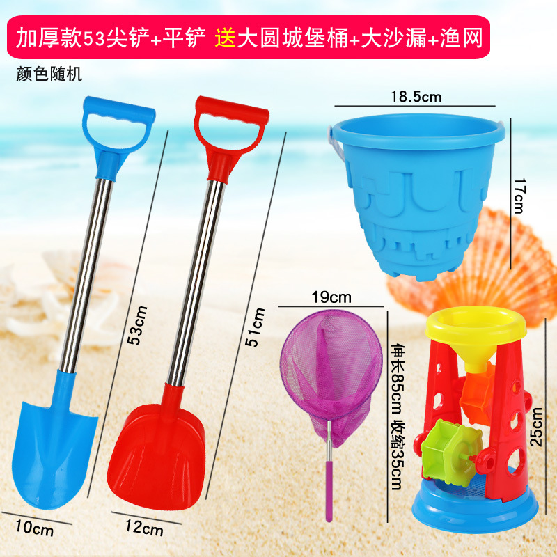 thickened 53 pointed shovel + flat shovel get big round castle bucket + fishnet