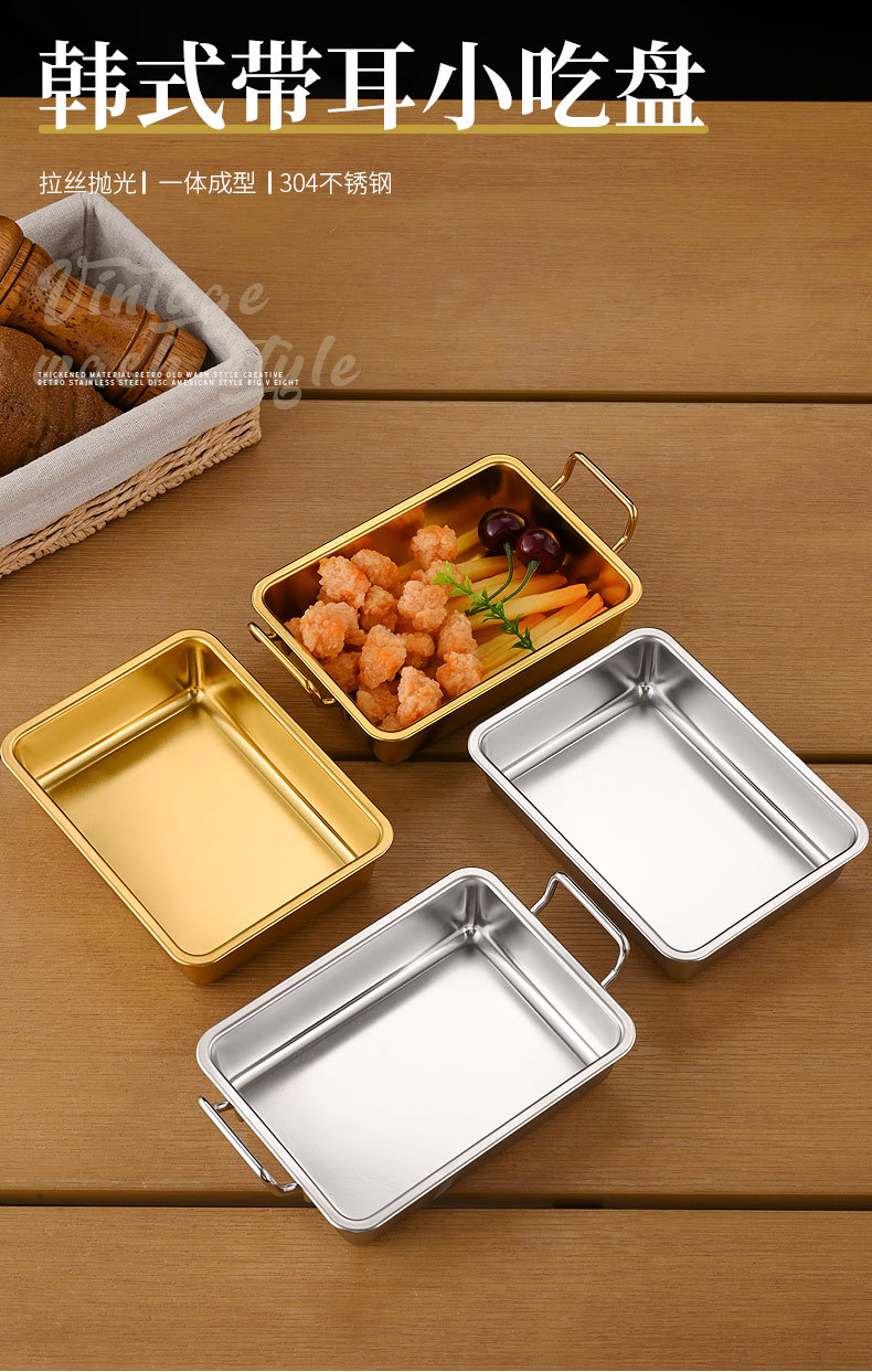 cross-border 304 stainless steel snack plate creative binaural fried chicken french fries dish for commercial use and hot pot restaurant dish plate dinner plate