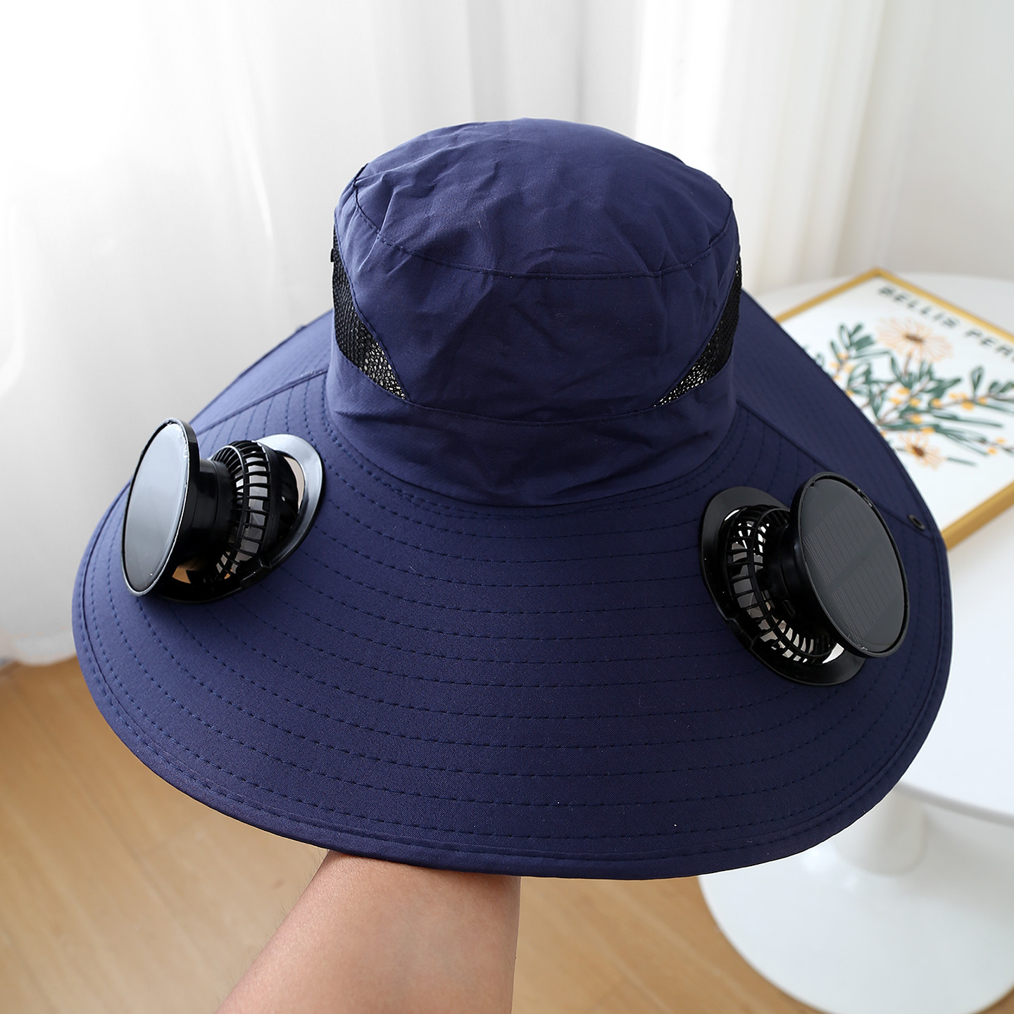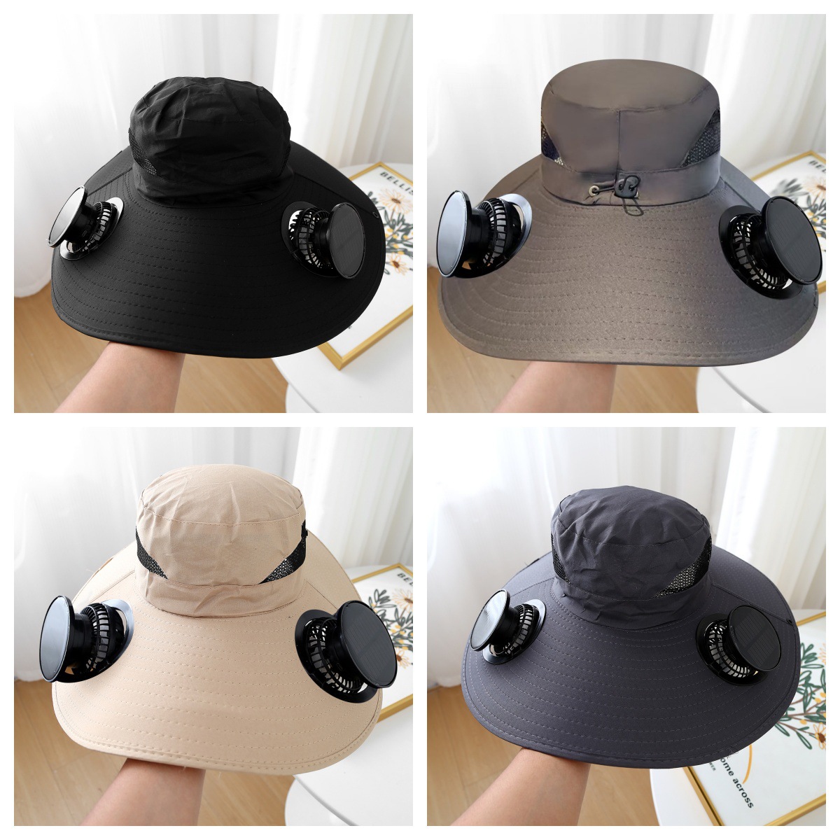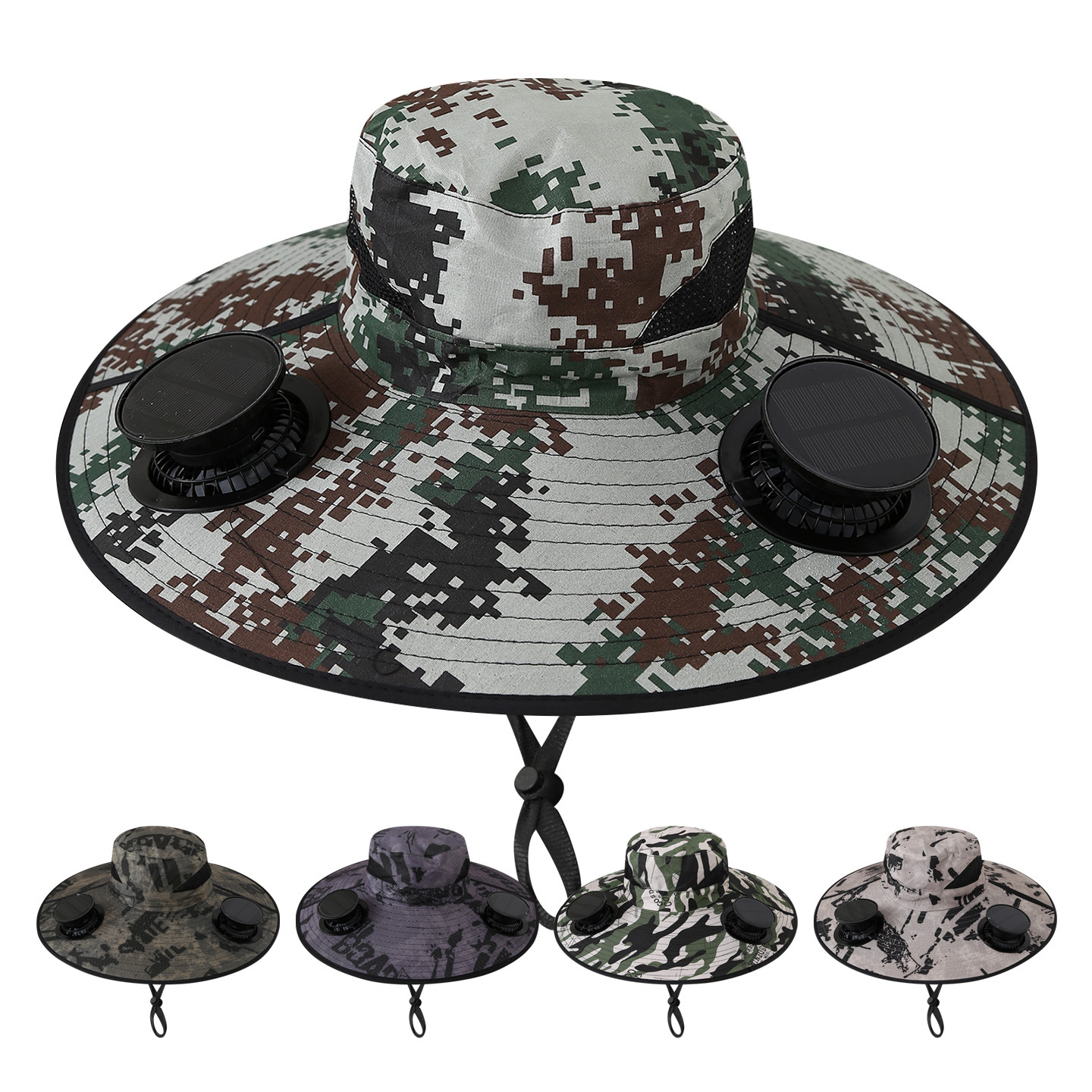 removable solar energy recharge fan embedded big brim hat summer outdoor sun hat men's mountaineering fishing hat