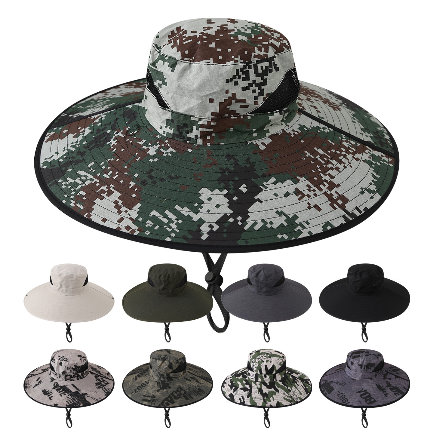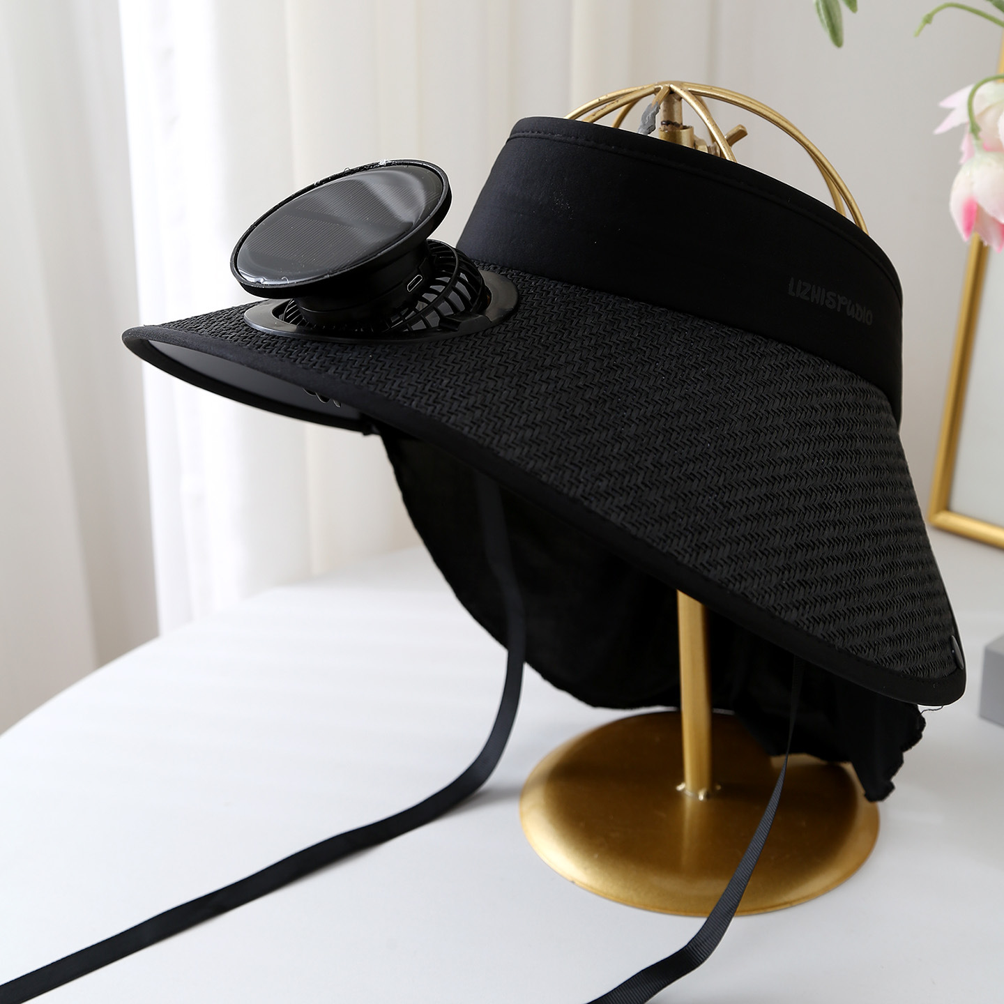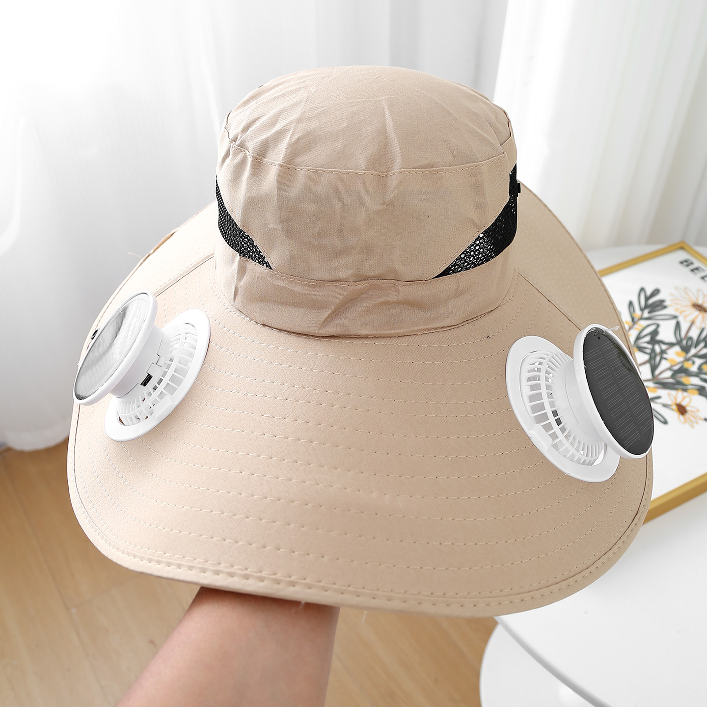 removable solar energy recharge fan embedded big brim hat summer outdoor sun hat men's mountaineering fishing hat