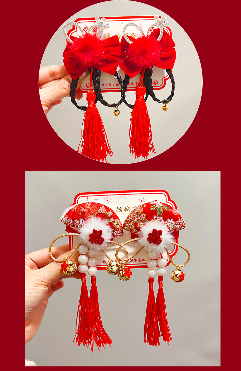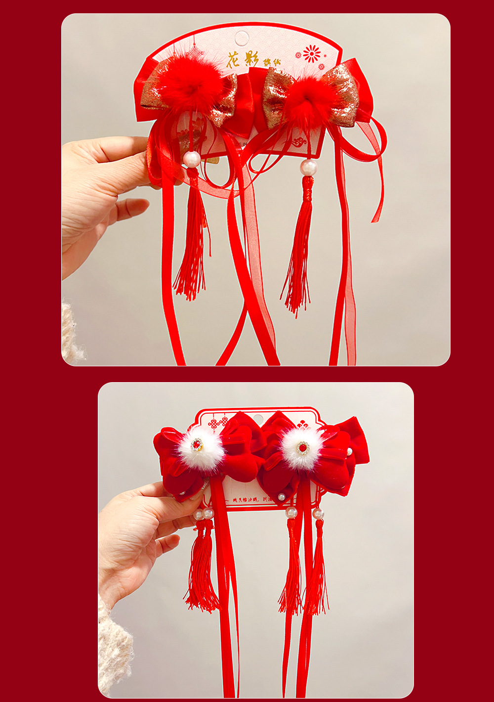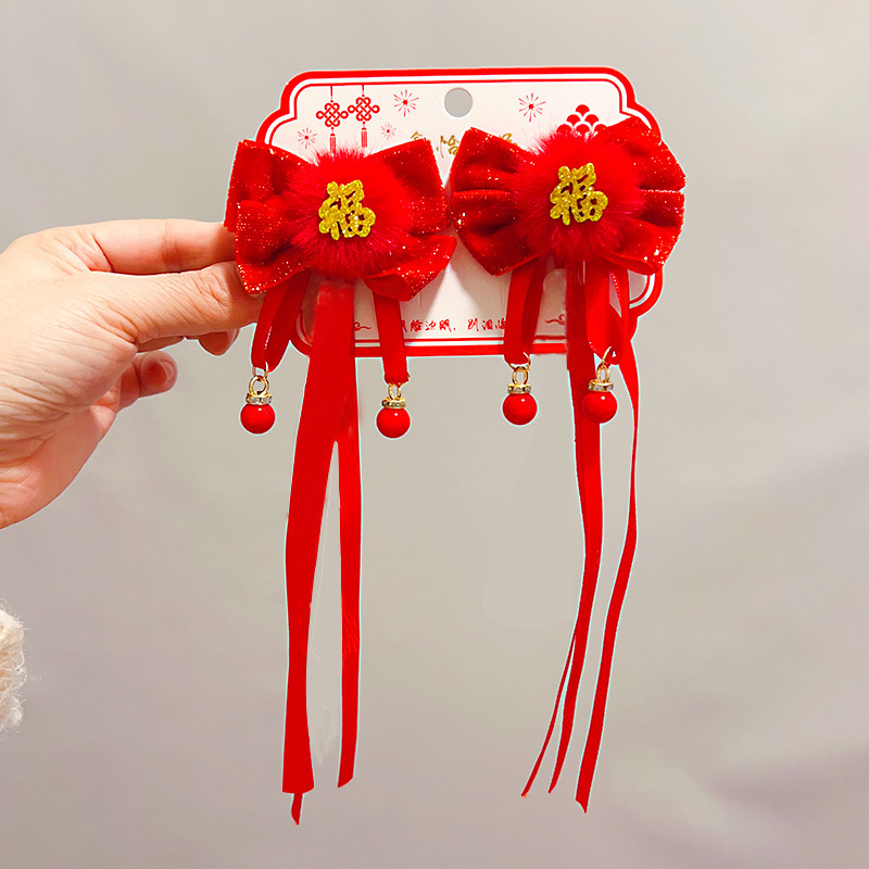 bow fu character fur red bead tassel