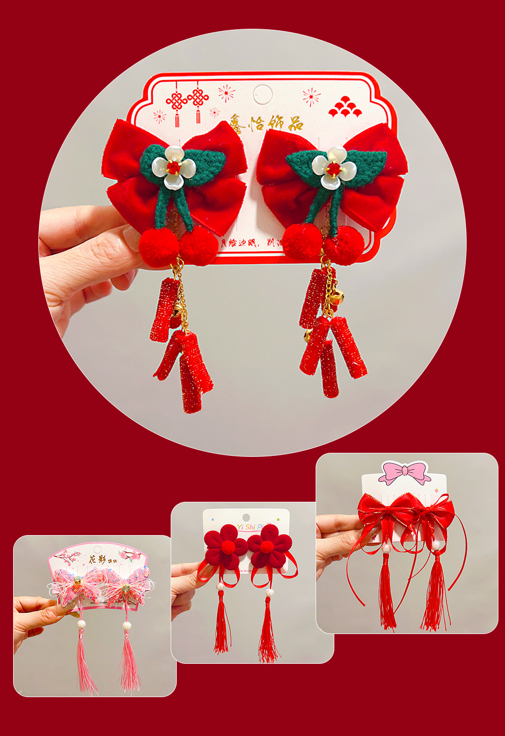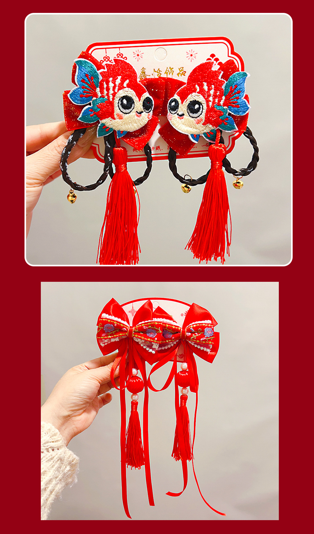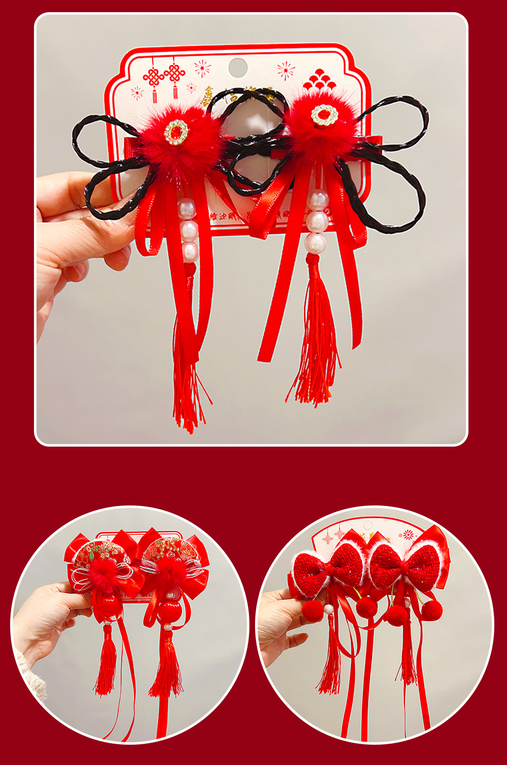 bow fu character fur red bead tassel