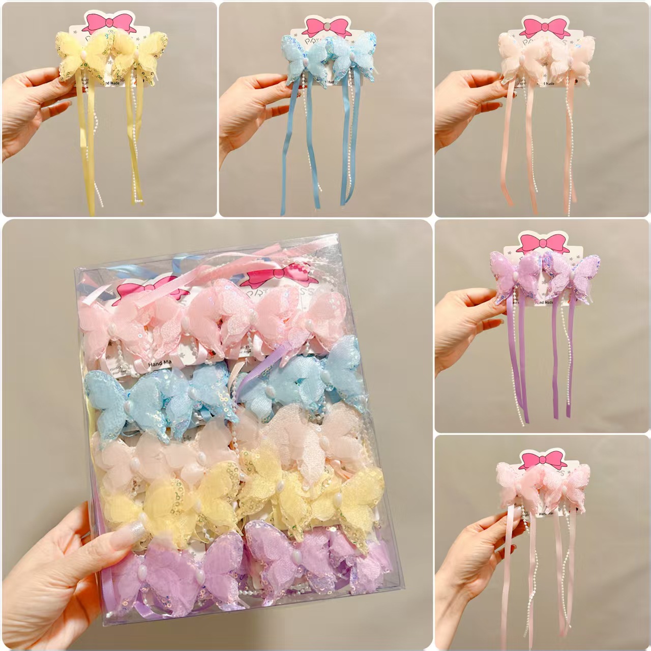 12 crystal butterfly pearl tassel mixed color one card