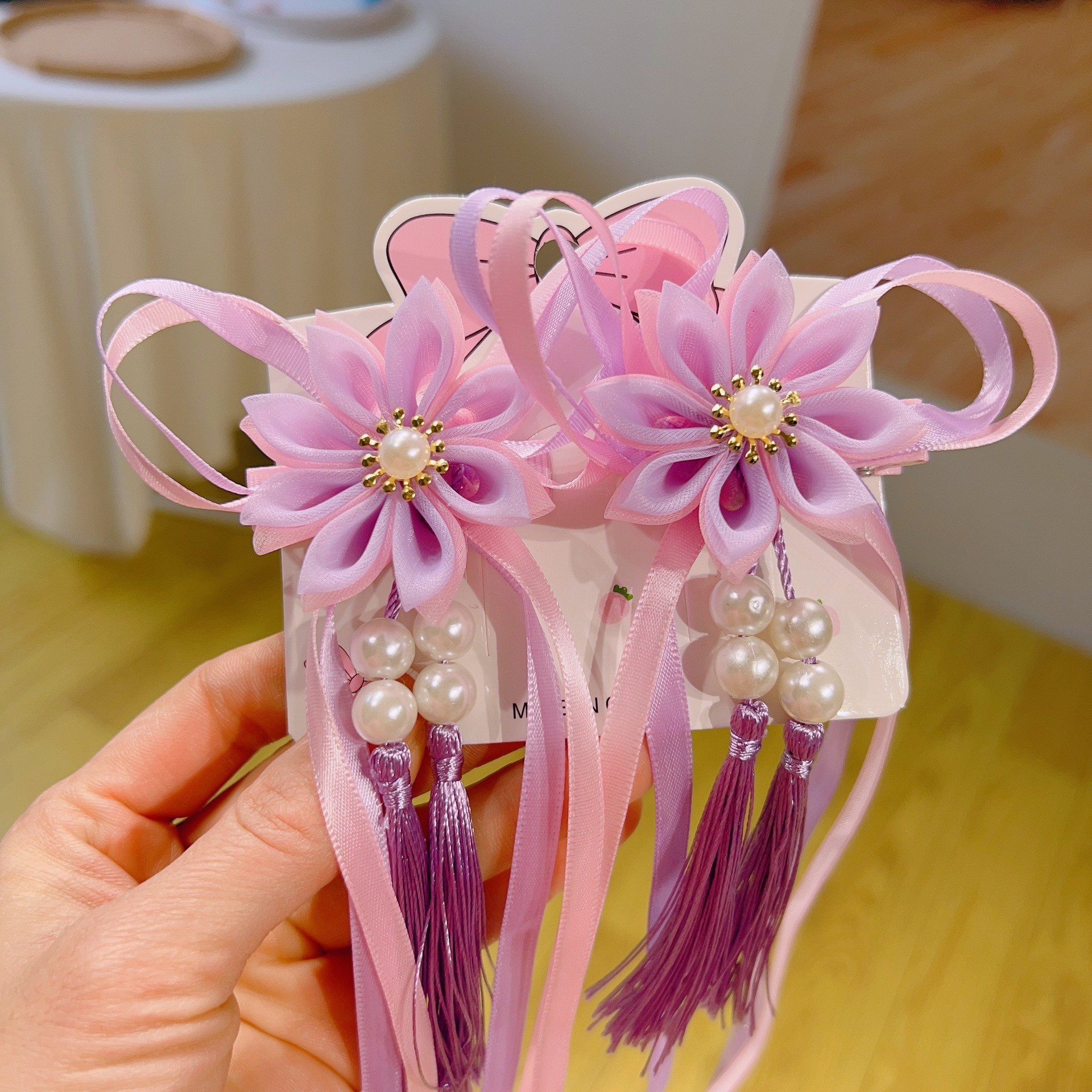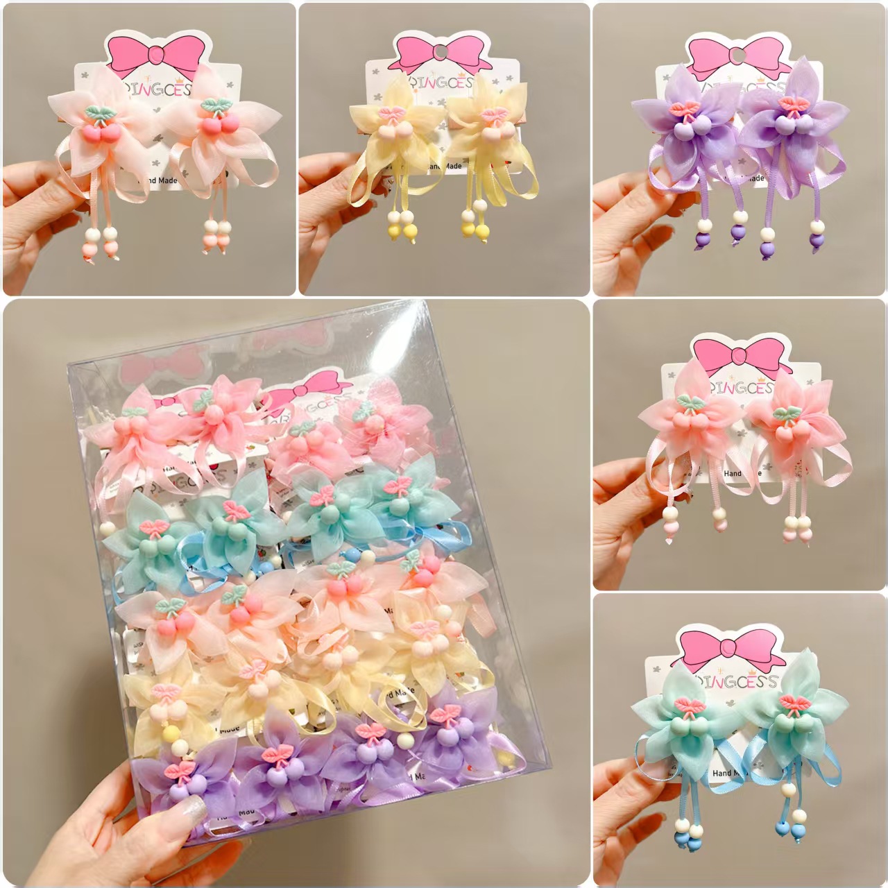 14 flower pearl ribbon mixed color one card