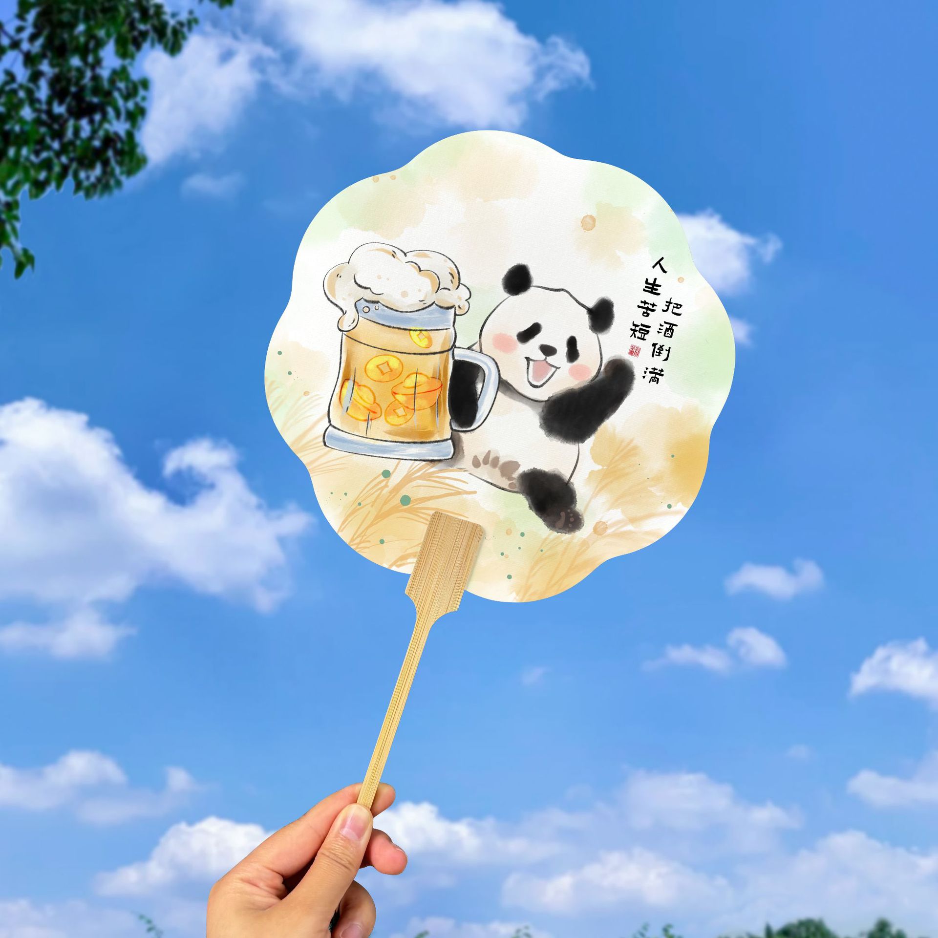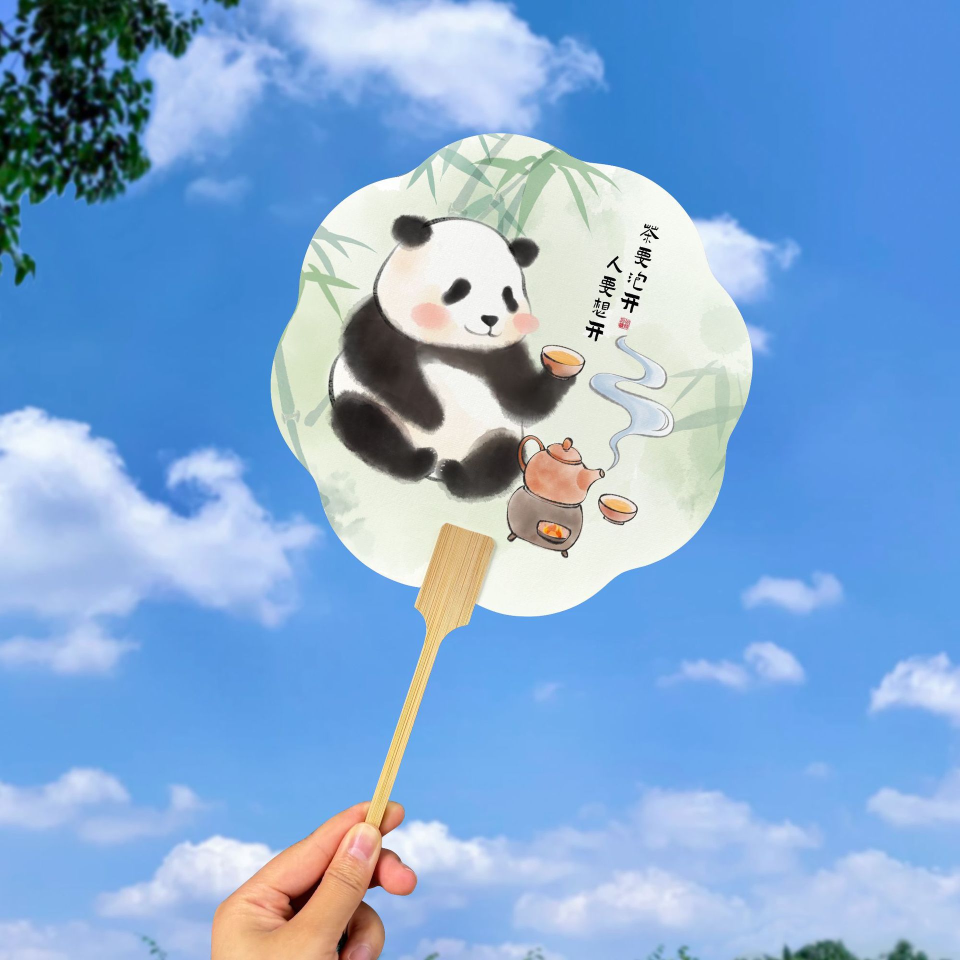 eight-character panda fan [milk tea in hand]]