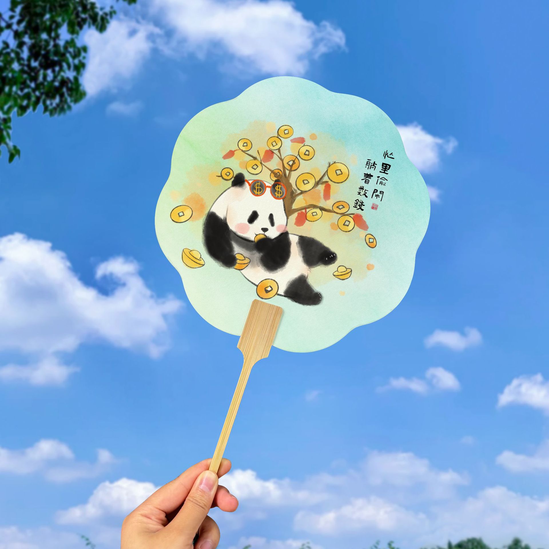 fortune panda fan [flowers bloom and wealth]]