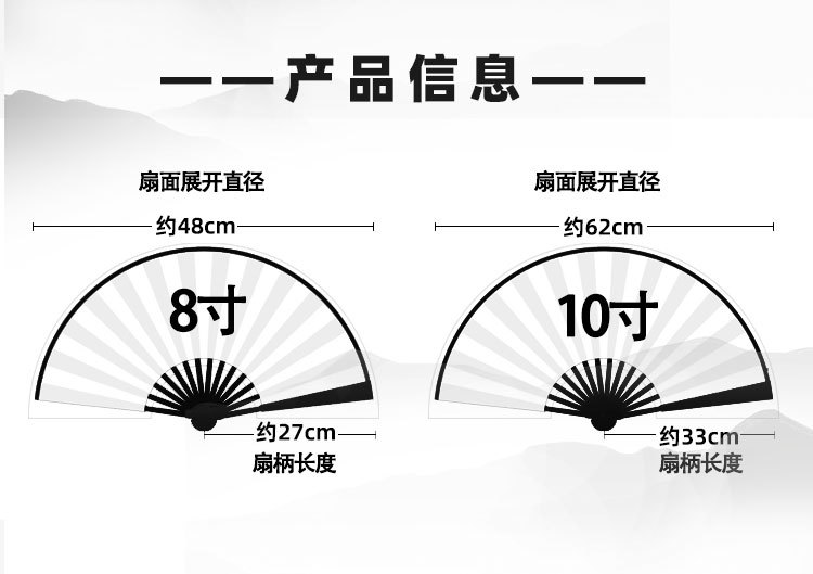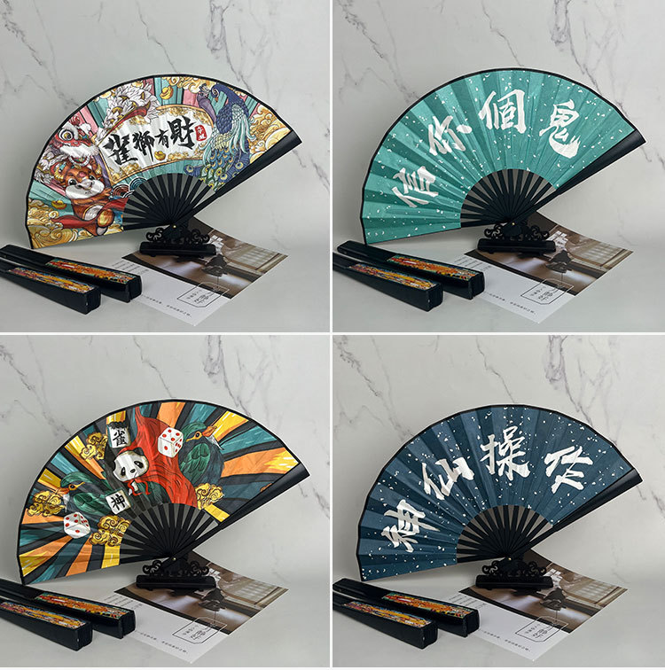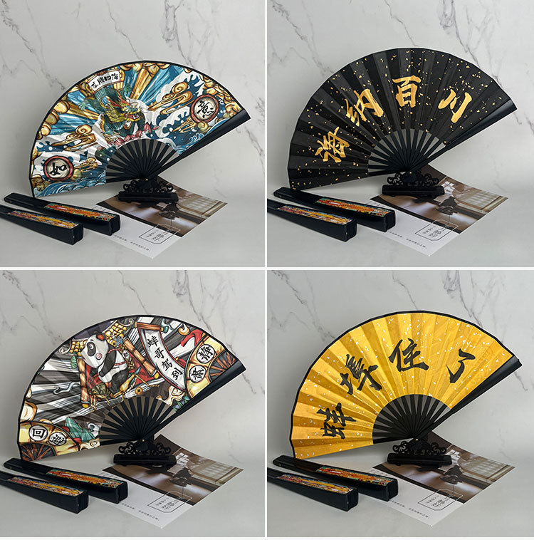 10-inch bamboo bone national fashion fan (majestic and powerful-like tiger wings)