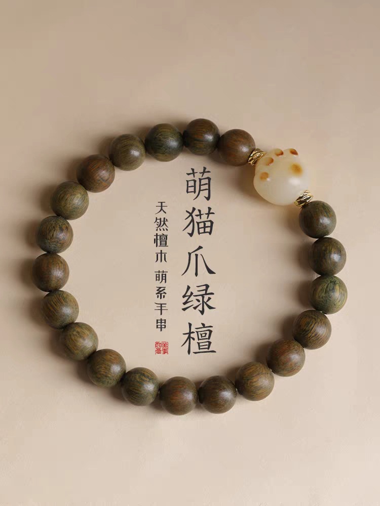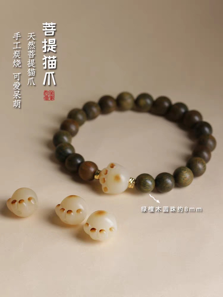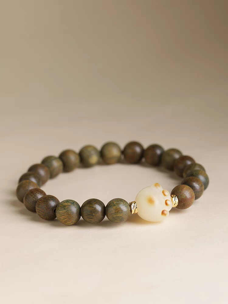 guajacwood single circle bracelet 8mm with bodhi cat paw style