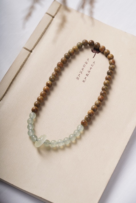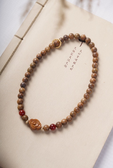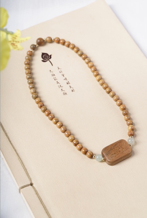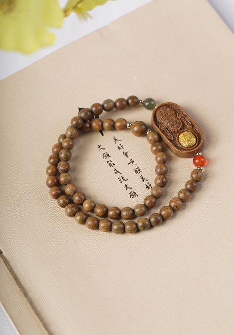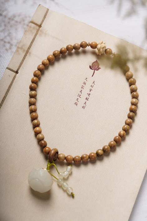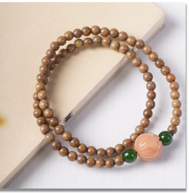 guajacwood 8mm double-layer bracelet [with plum blossom + jade lotus seedpod tassel]]