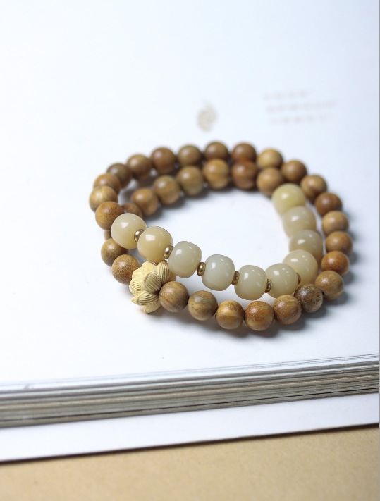 guajacwood 8mm double ring bracelet white jade lotus