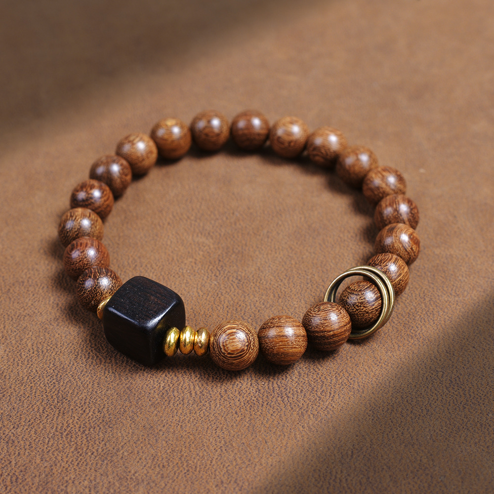 golden sandalwood 8mm lotus double ring bracelet