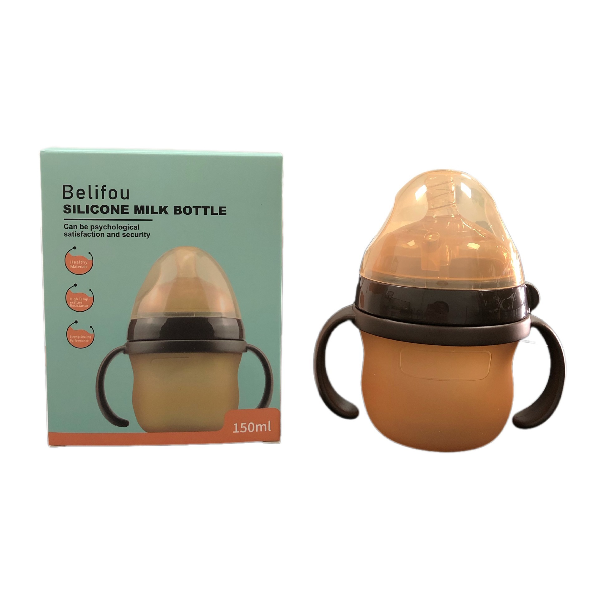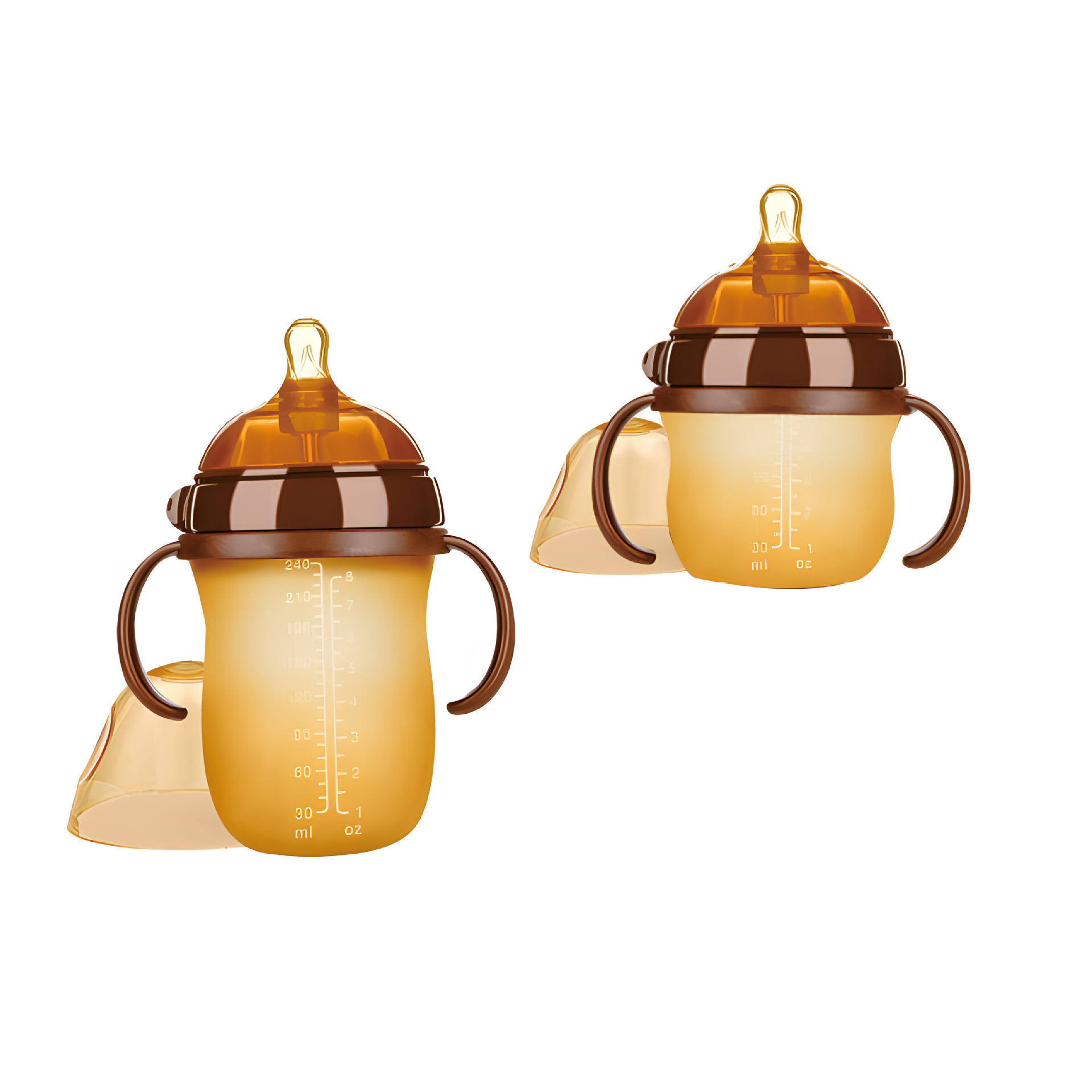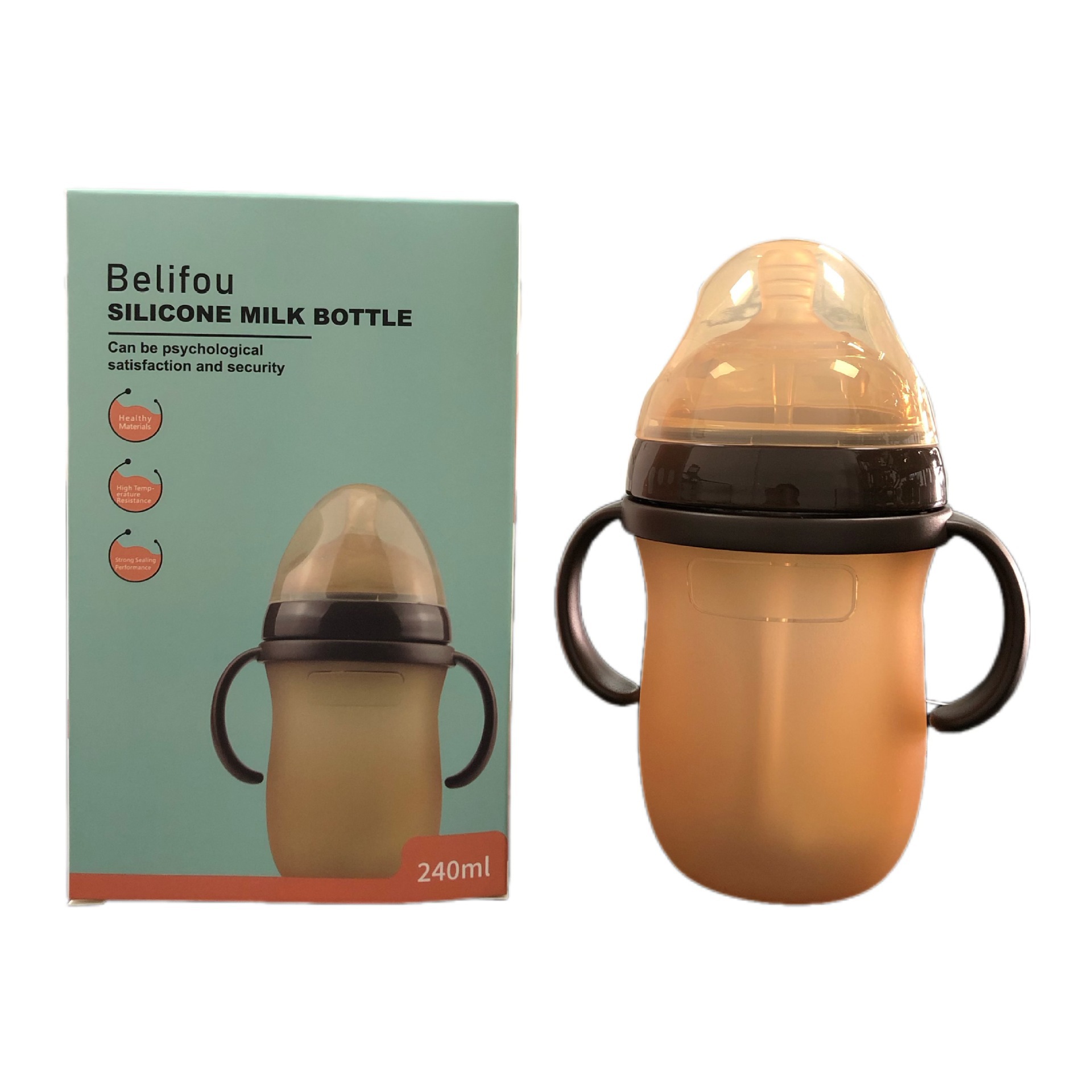 baby products nano silver silicone antibacterial super soft arc large diameter anti-flatulence handle feeding bottle 240ml nipple