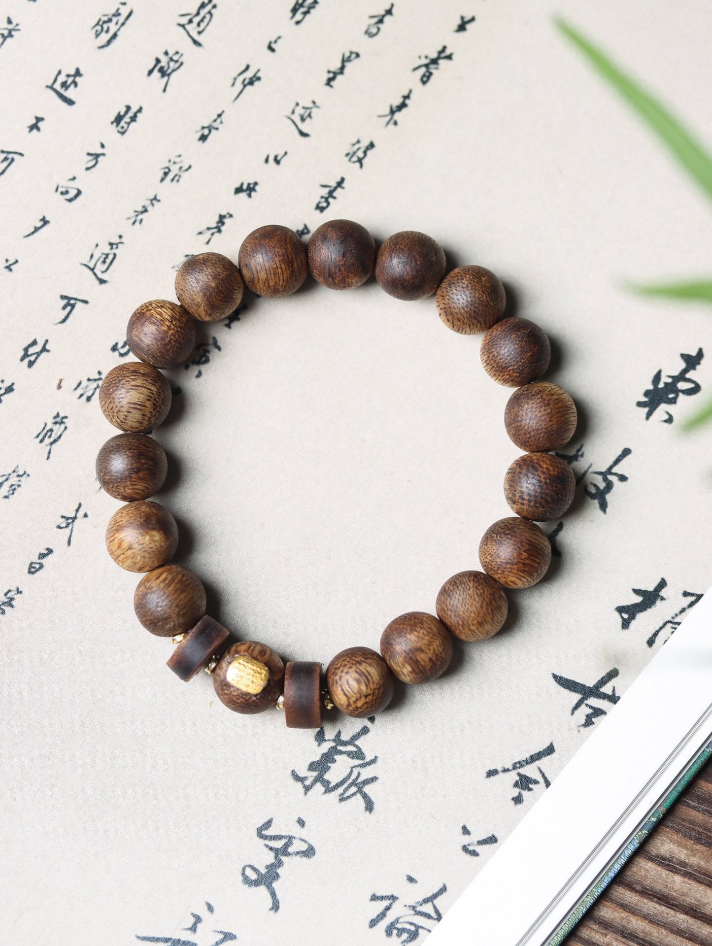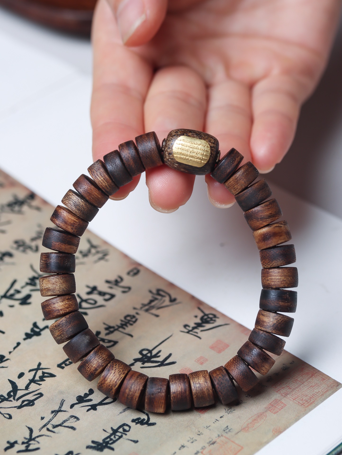qi nan agilawood tablet beads inlaid with five meridians