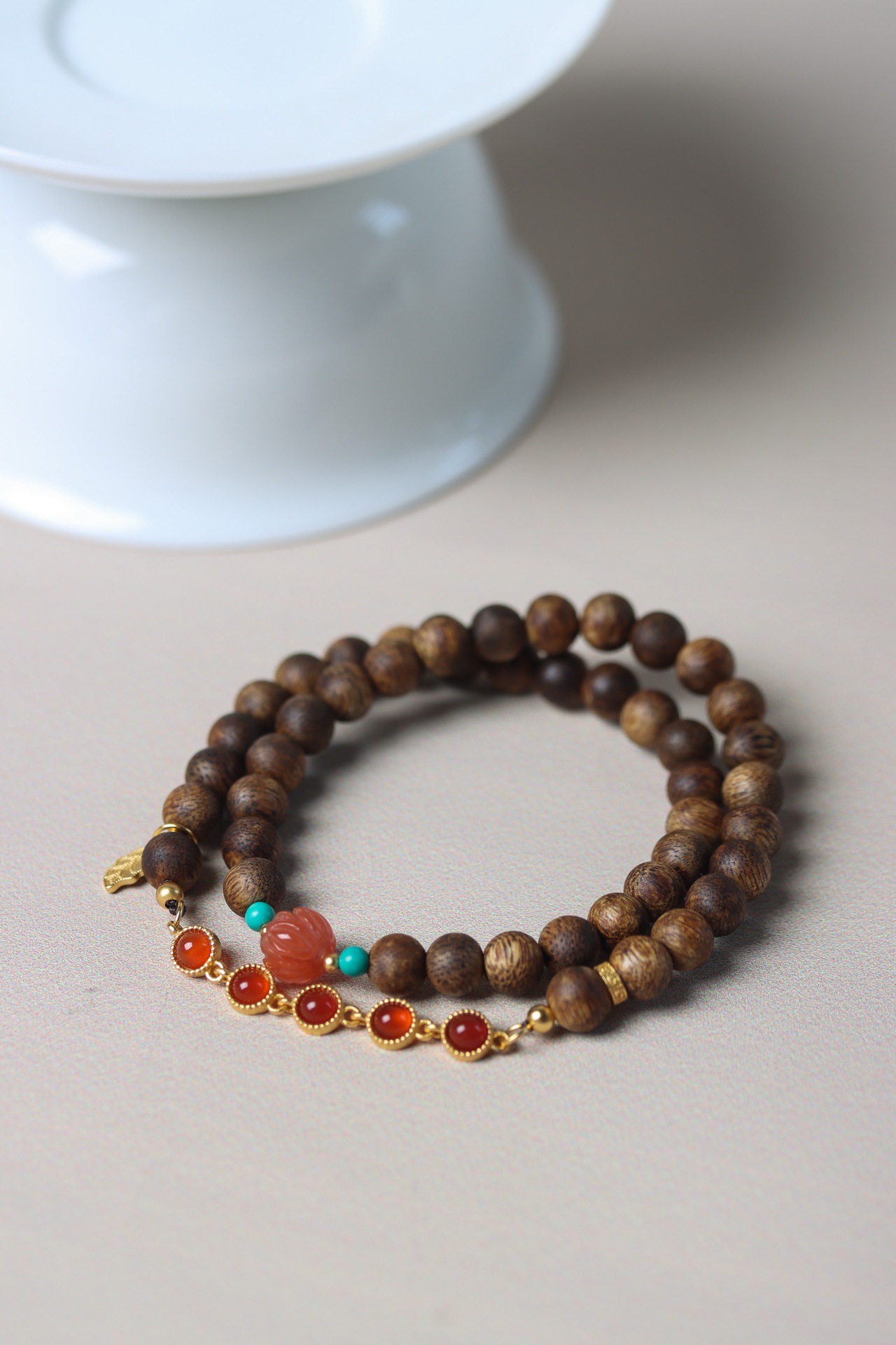 qi nan agilawood double circle with south red turquoise