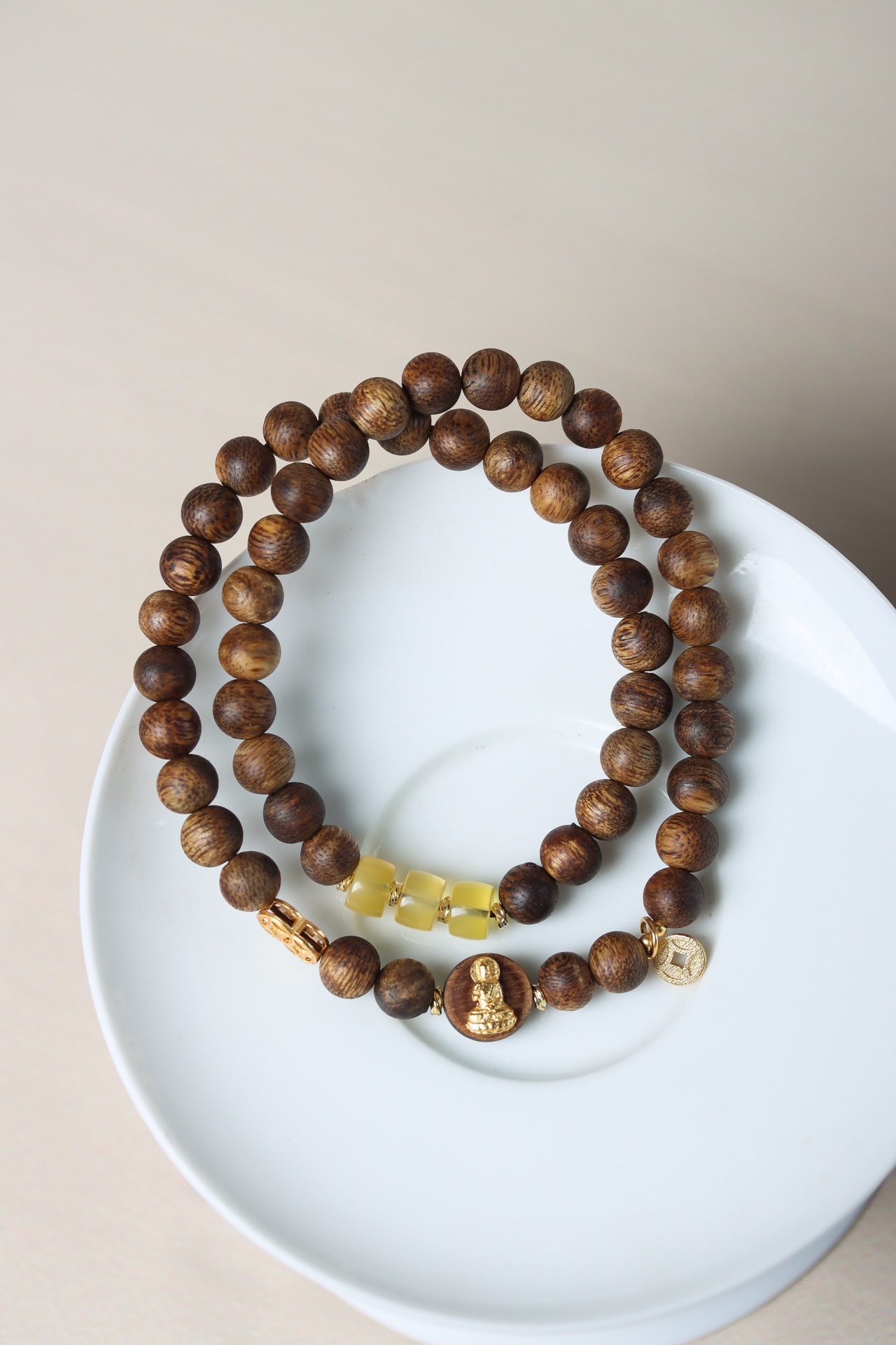 qi nan agilawood double circle match beeswax maitreya buddha