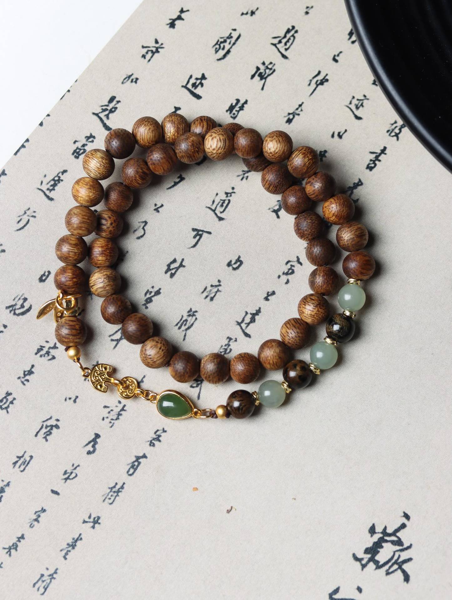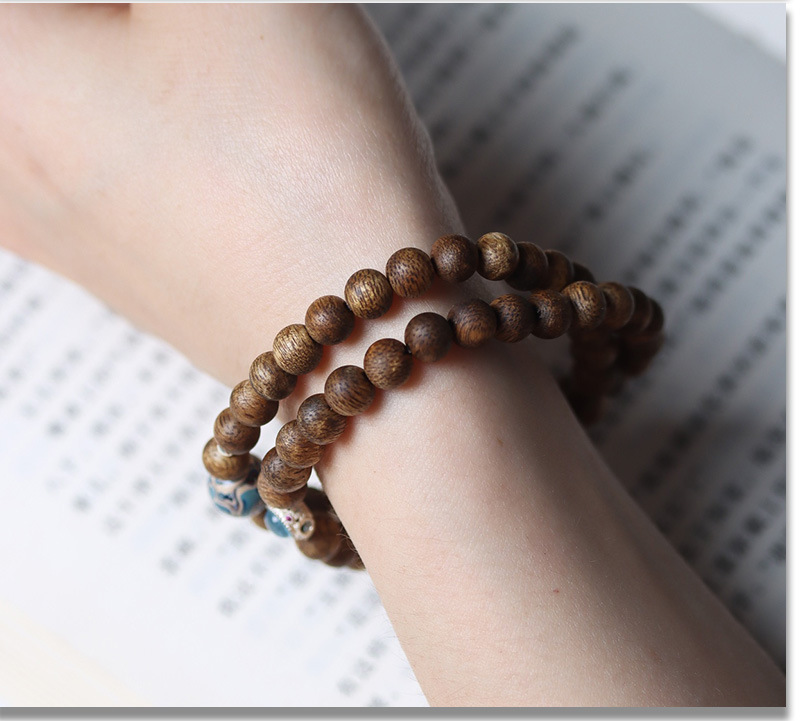 qi nan agilawood 6mm double ring inlaid five scriptures