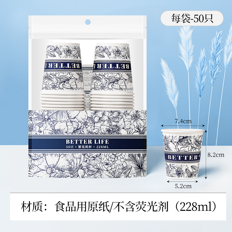 50 pcs-flowery paper cups 228ml (number of boxes: 1250)