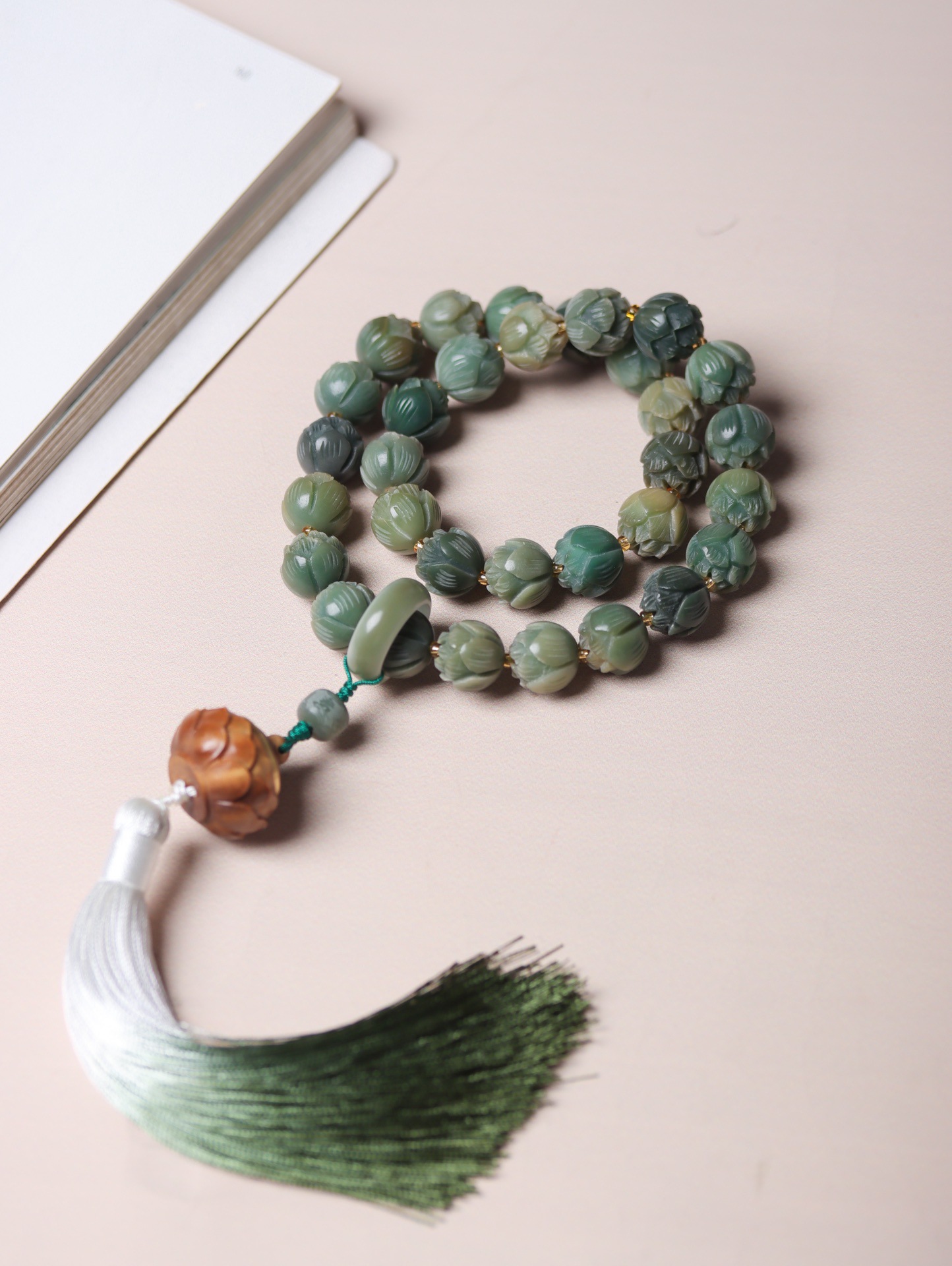 step by step lotus style with green bodhi flexible ring