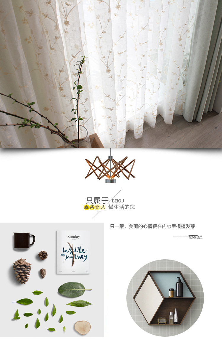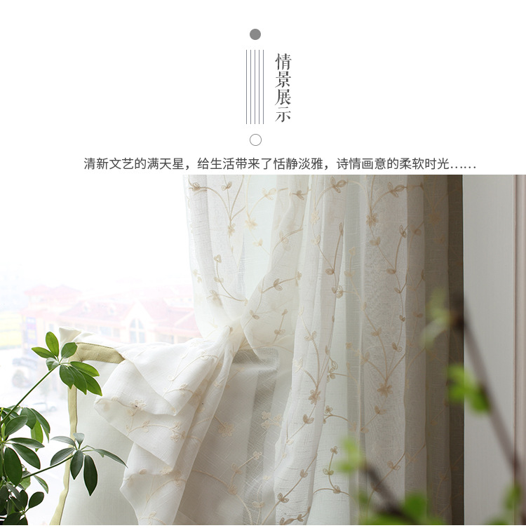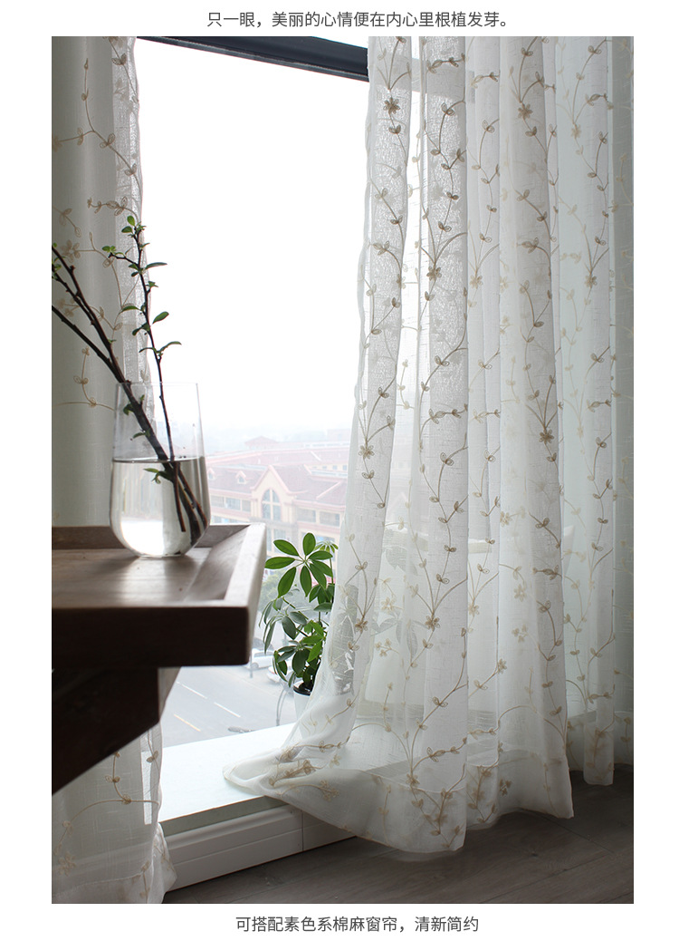 fresh and beautiful cotton and linen embroidery curtain new curtain flower starry sky white yarn embroidery mesh curtains