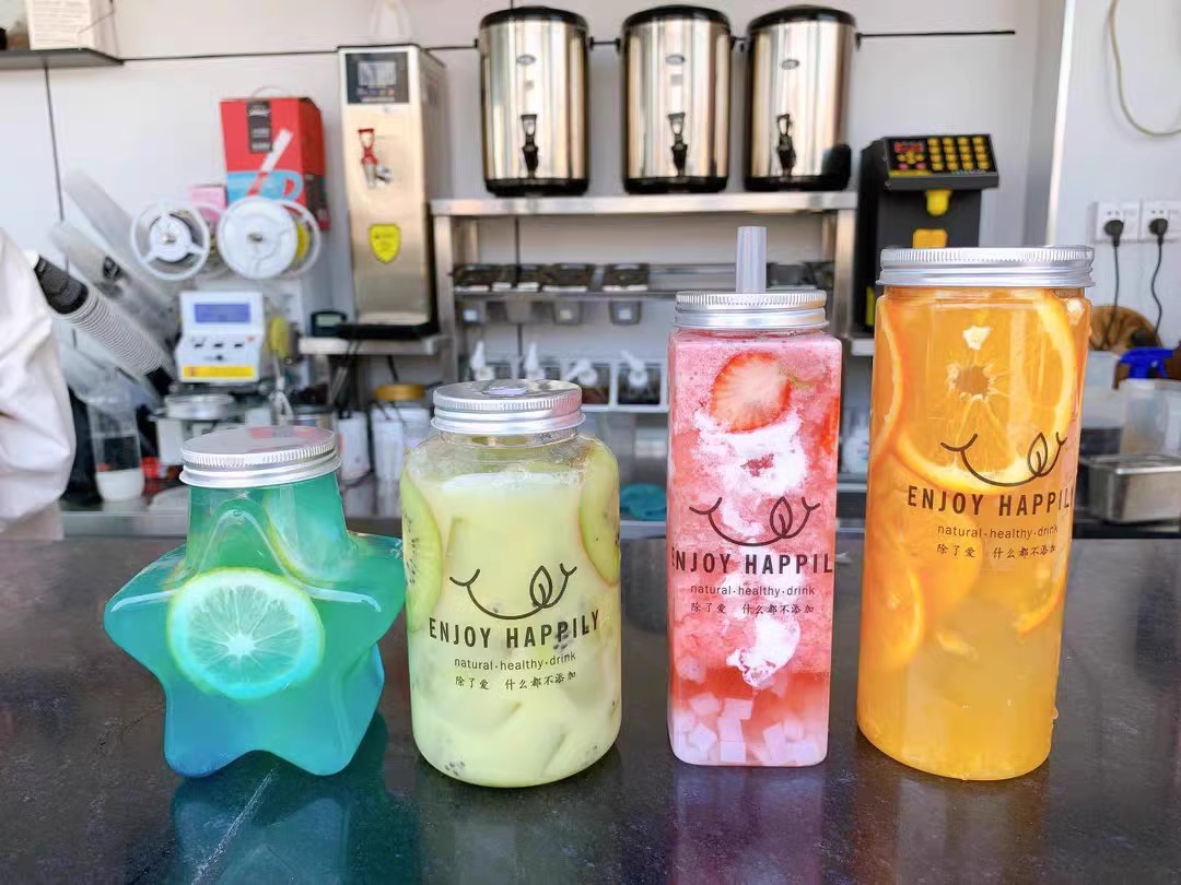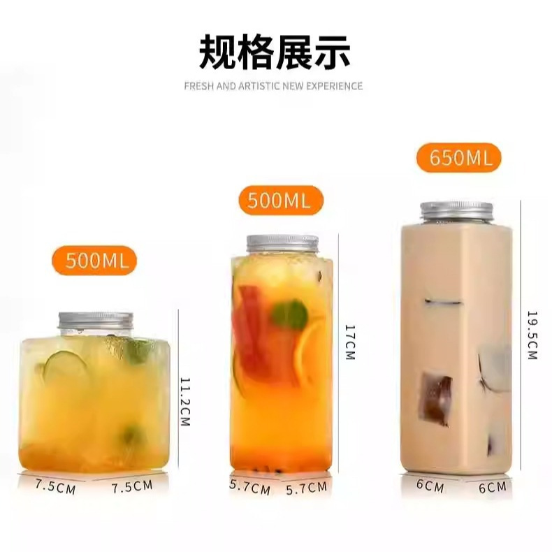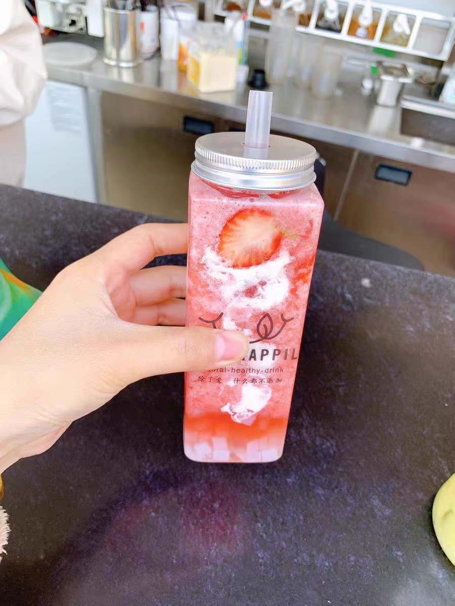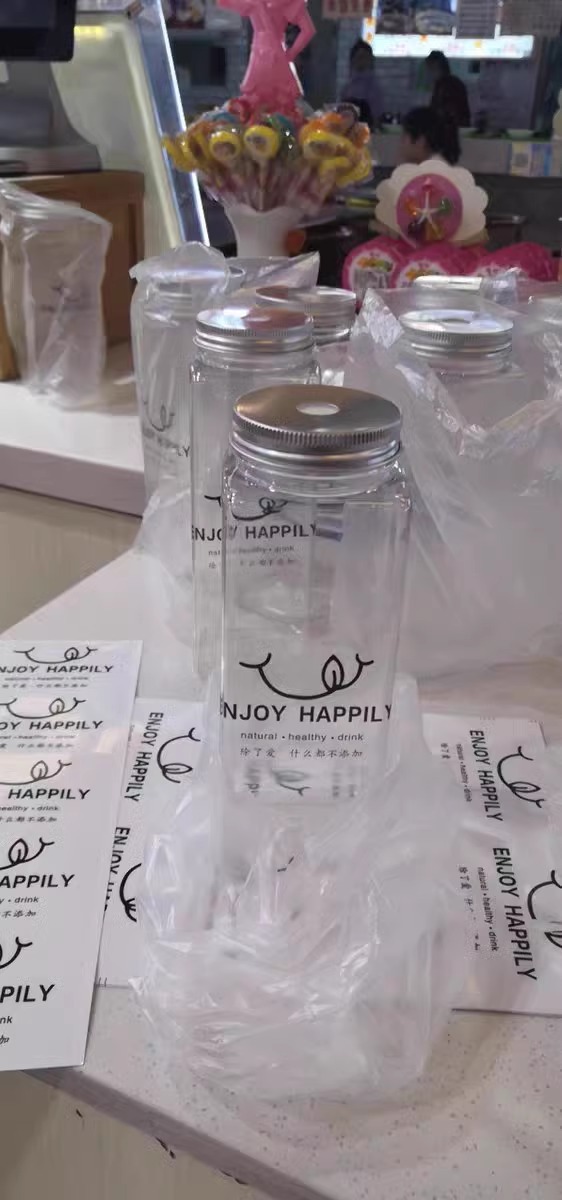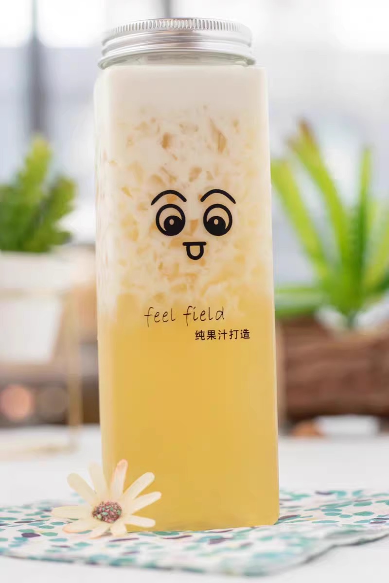 square bottle 350ml no opercle + maiji stickers with straw