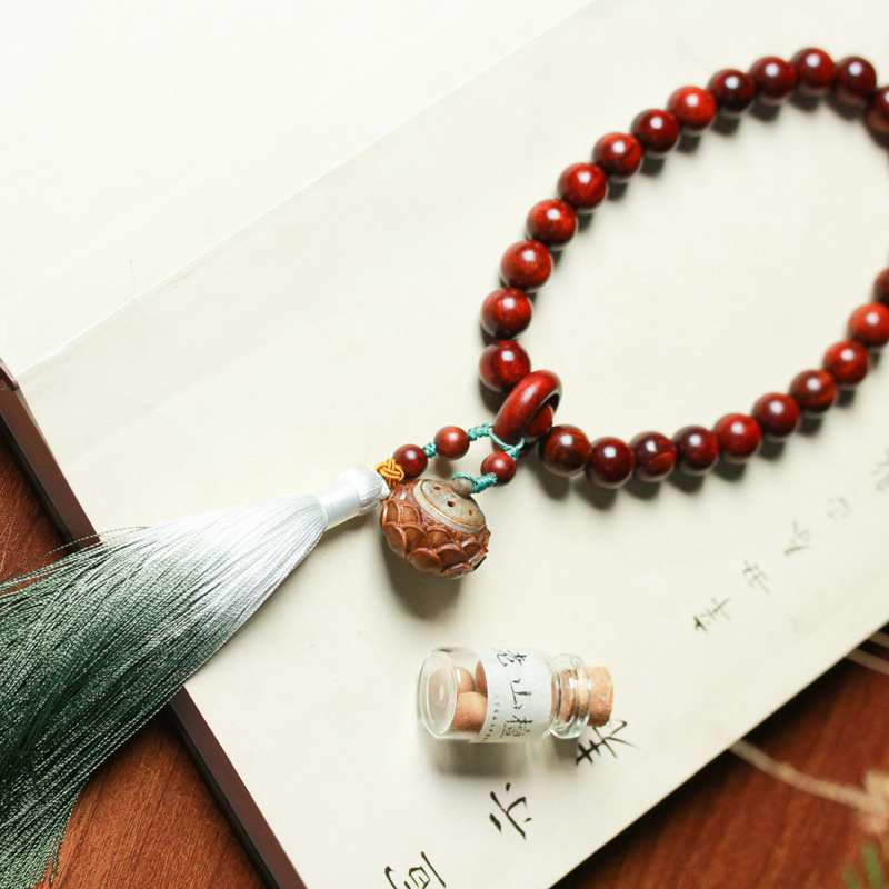 red sandalwood old-styled bead 8mm double-layer bracelet [dongling water drop pendant]]