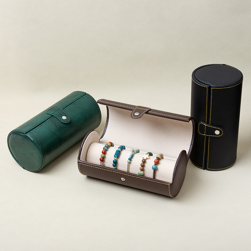 cylinder type bracelet box: brown