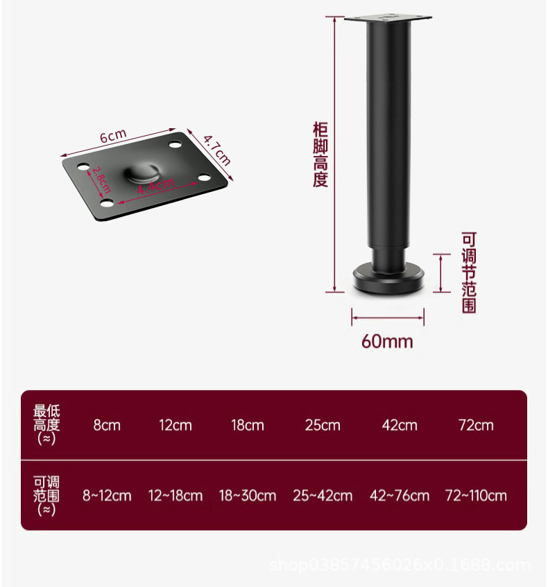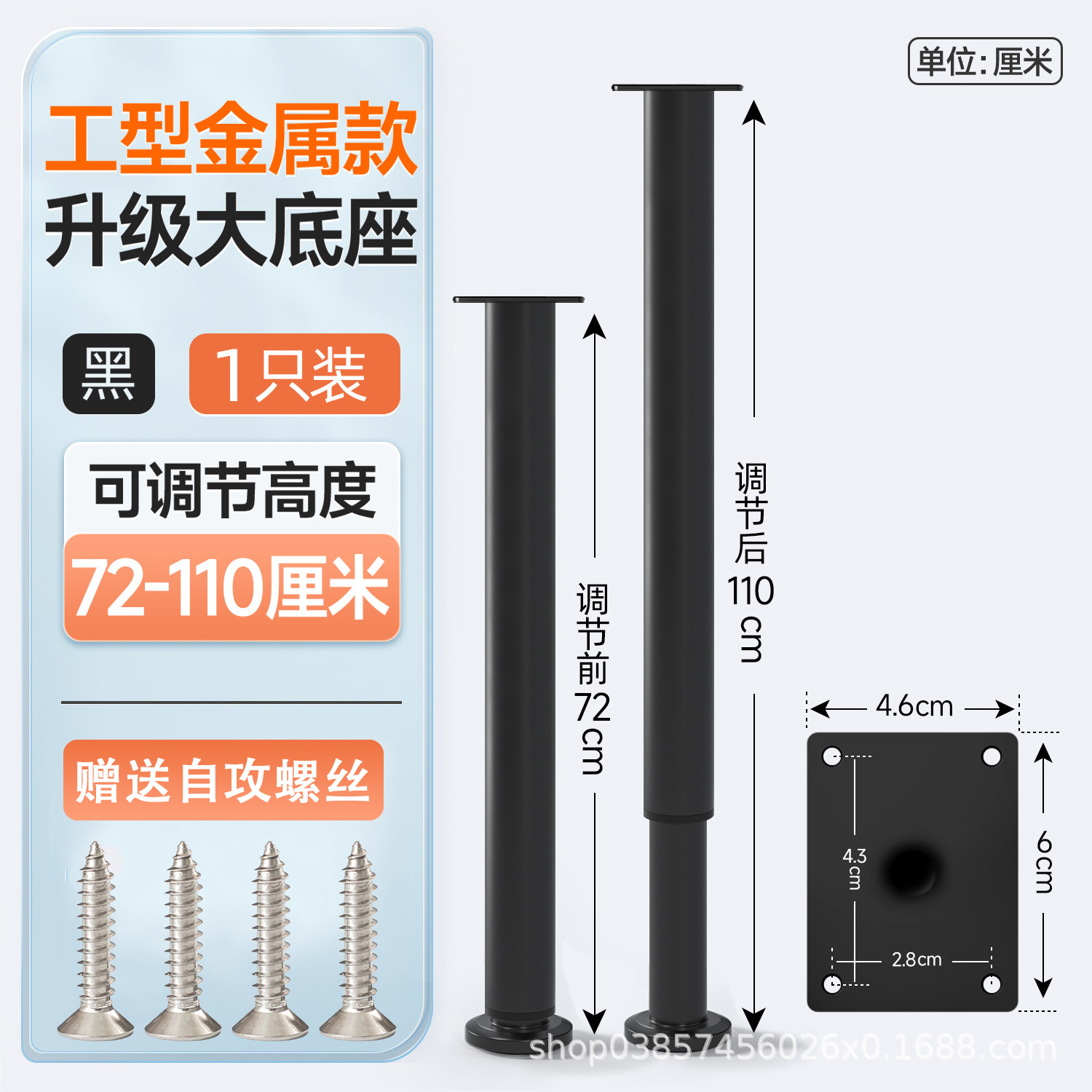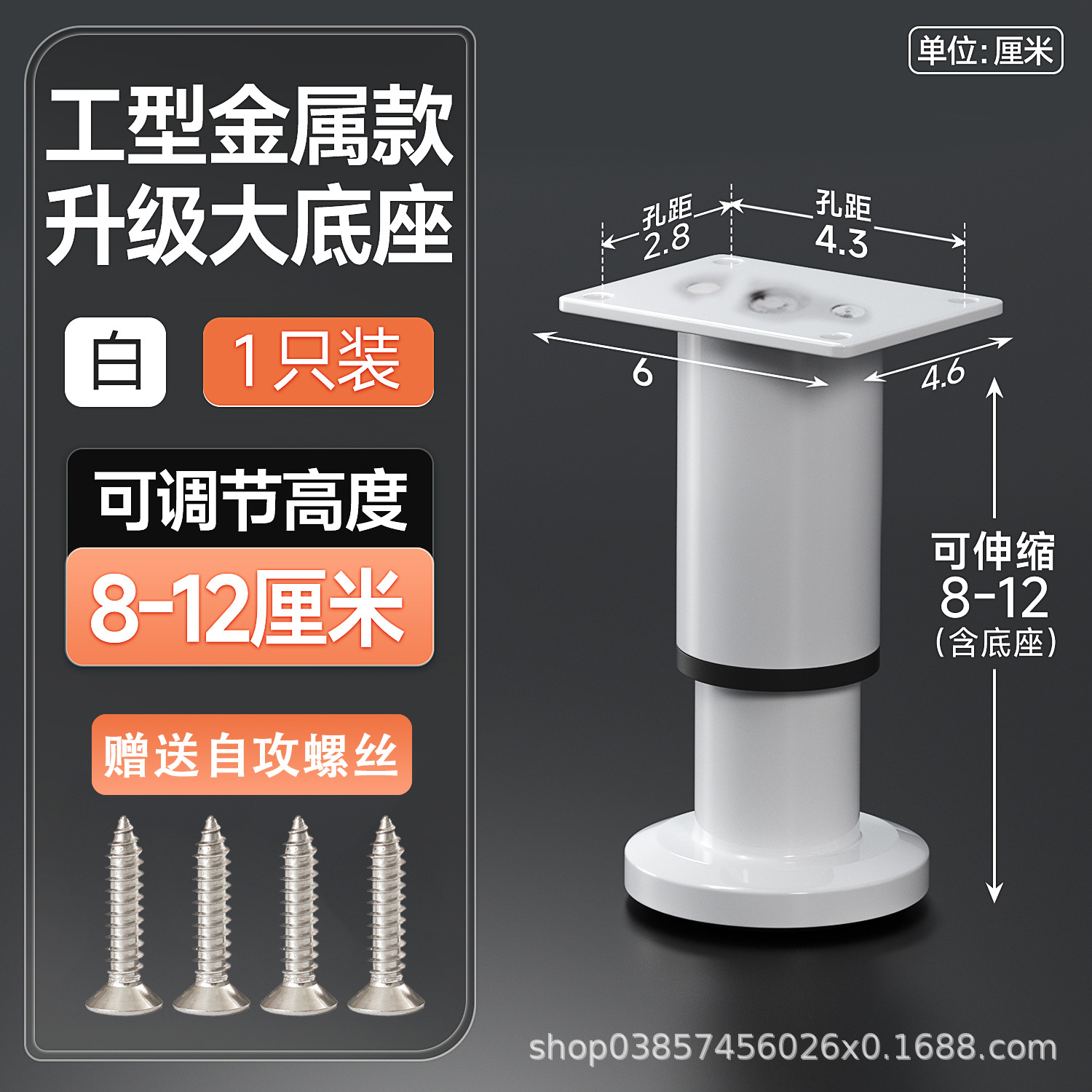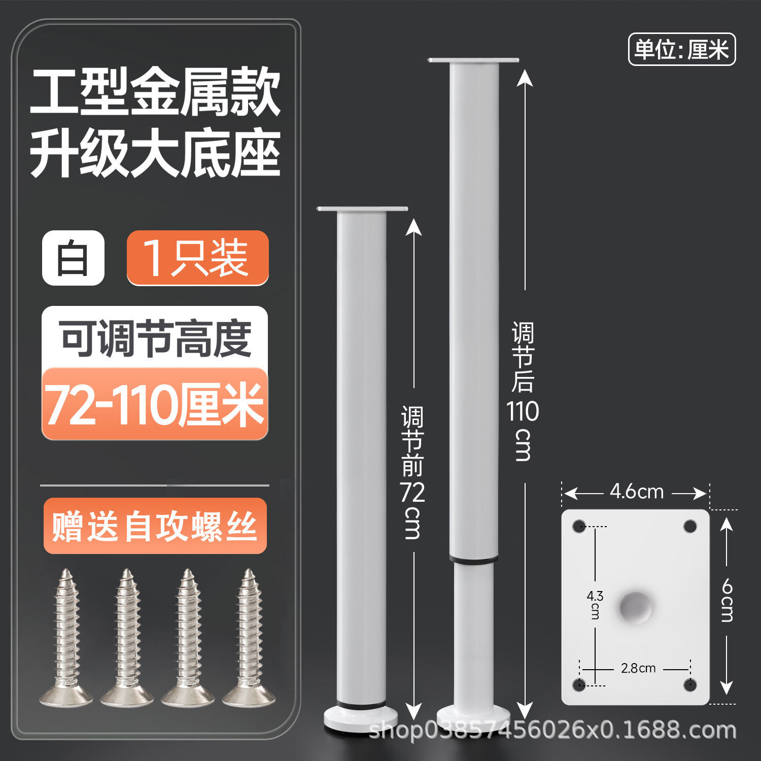 8cm [80-120mm] white【 wide bottom telescopic feet] free screws
