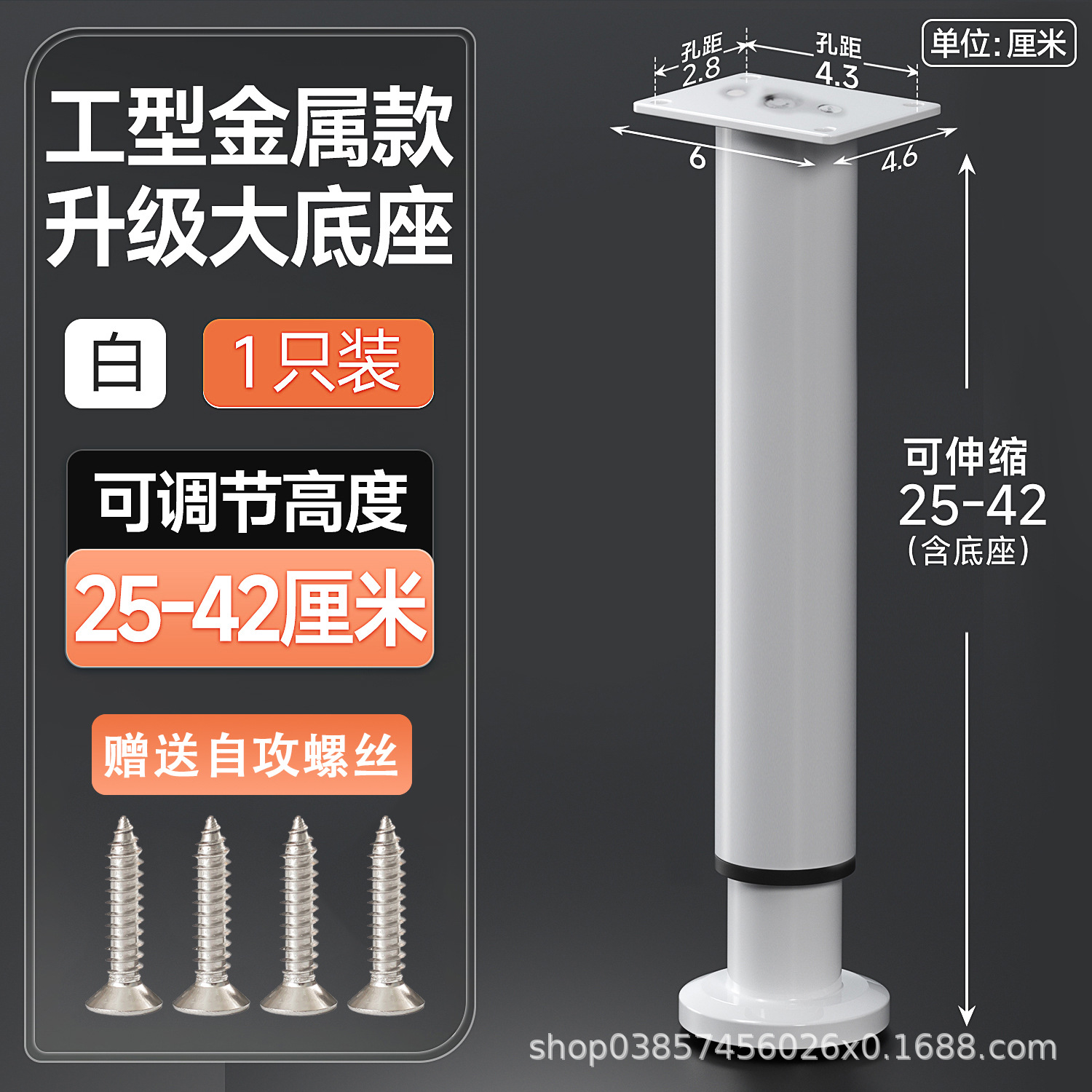 25cm [250-420mm] white【 wide bottom telescopic feet] free screws
