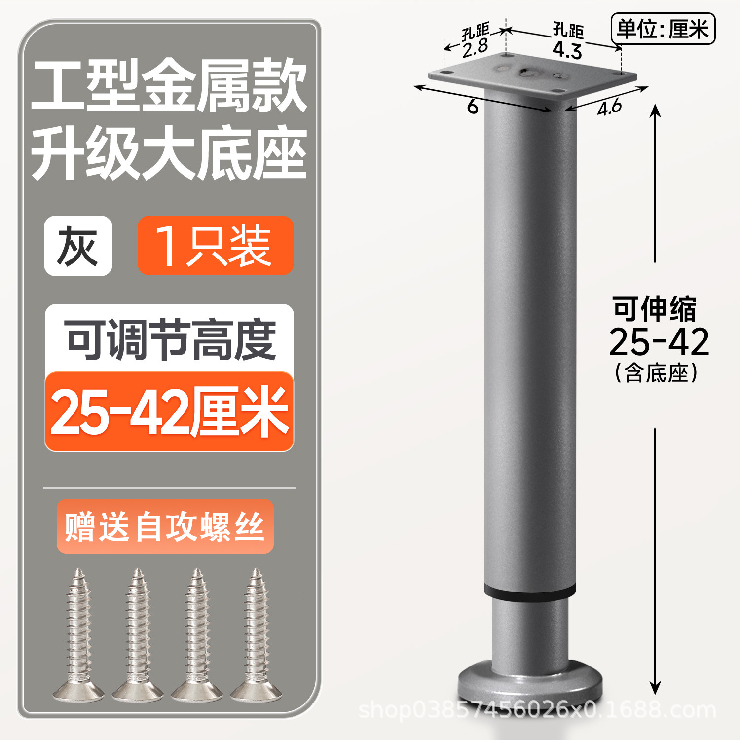 25cm [250-420mm] gray [wide bottom telescopic feet] with screws