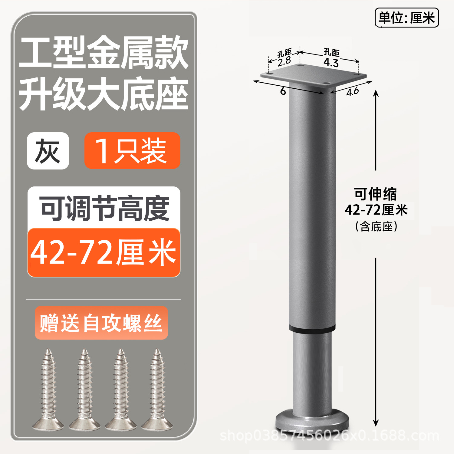 42cm [420-720mm] gray [wide bottom telescopic feet] with screws