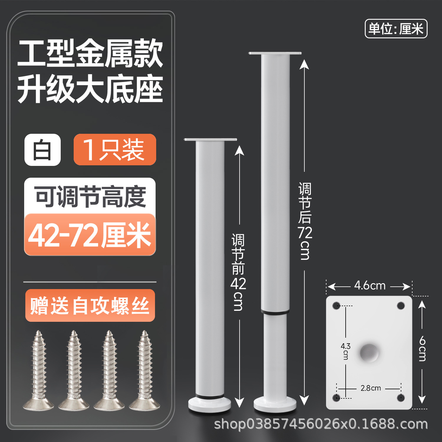 42cm [420-720mm] white【 wide bottom telescopic feet] free screws