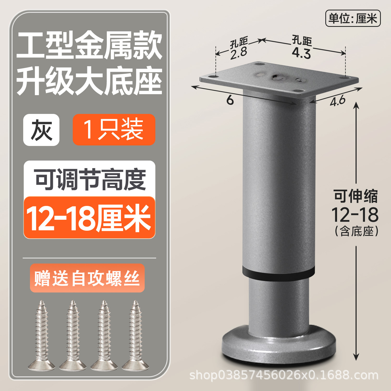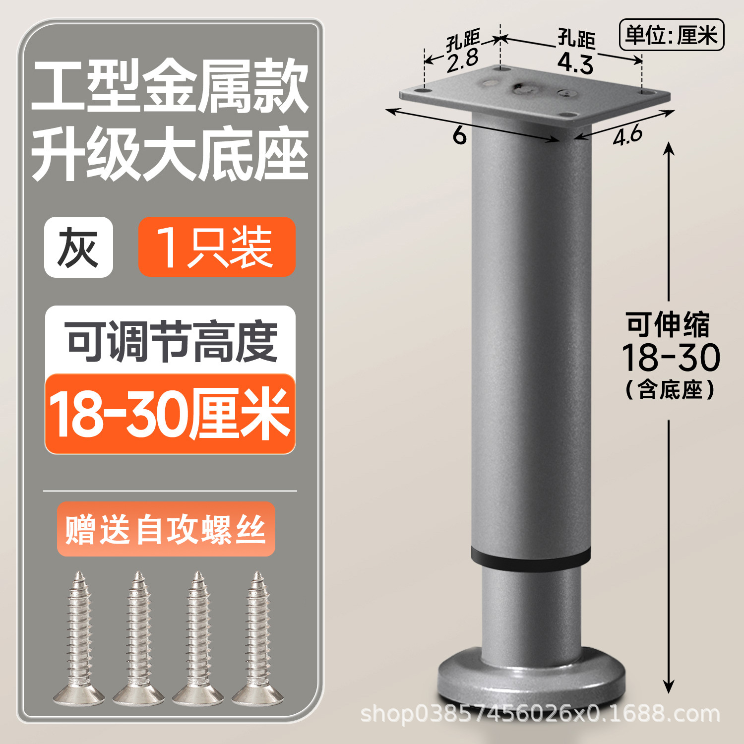 18cm [180-300mm] gray [wide bottom telescopic feet] with screws