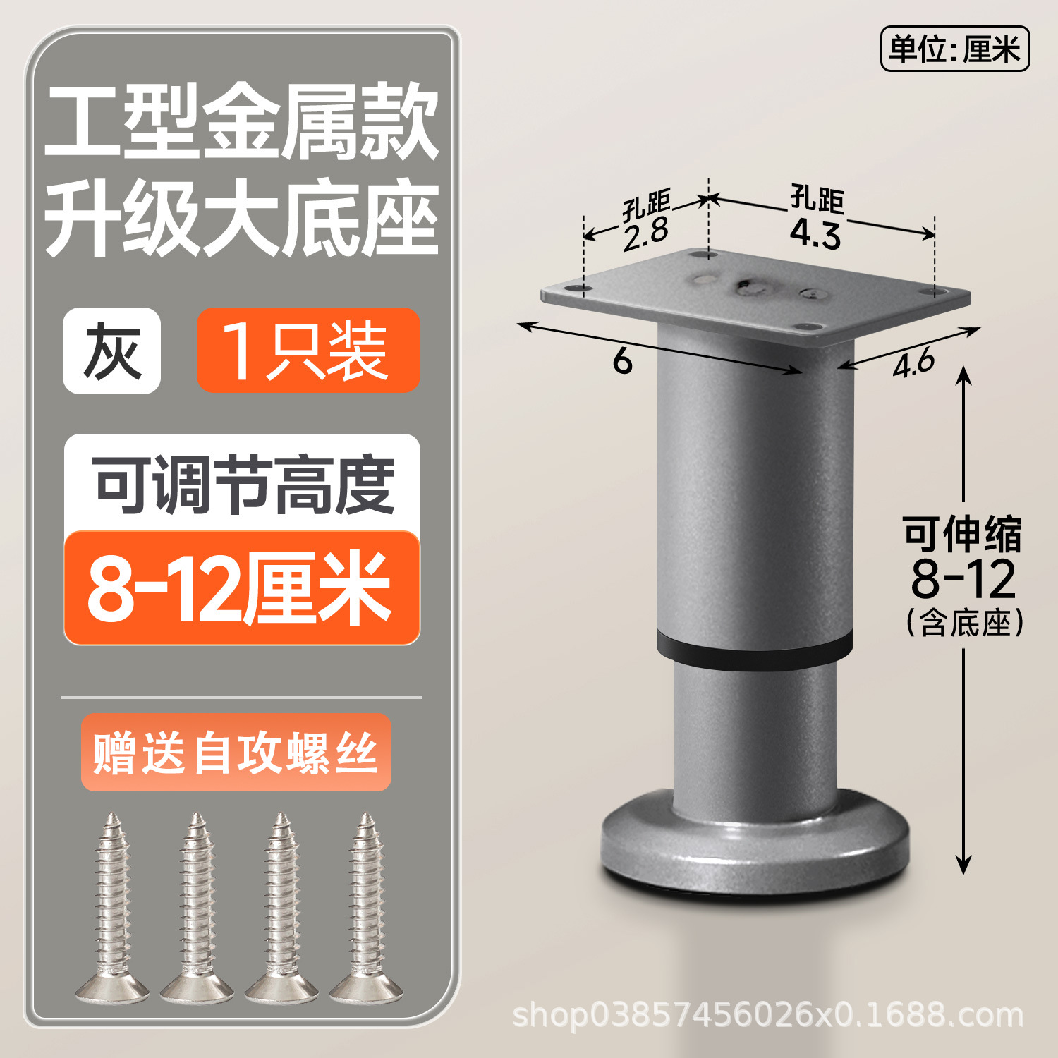 8cm [80-120mm] gray [wide bottom telescopic feet] with screws