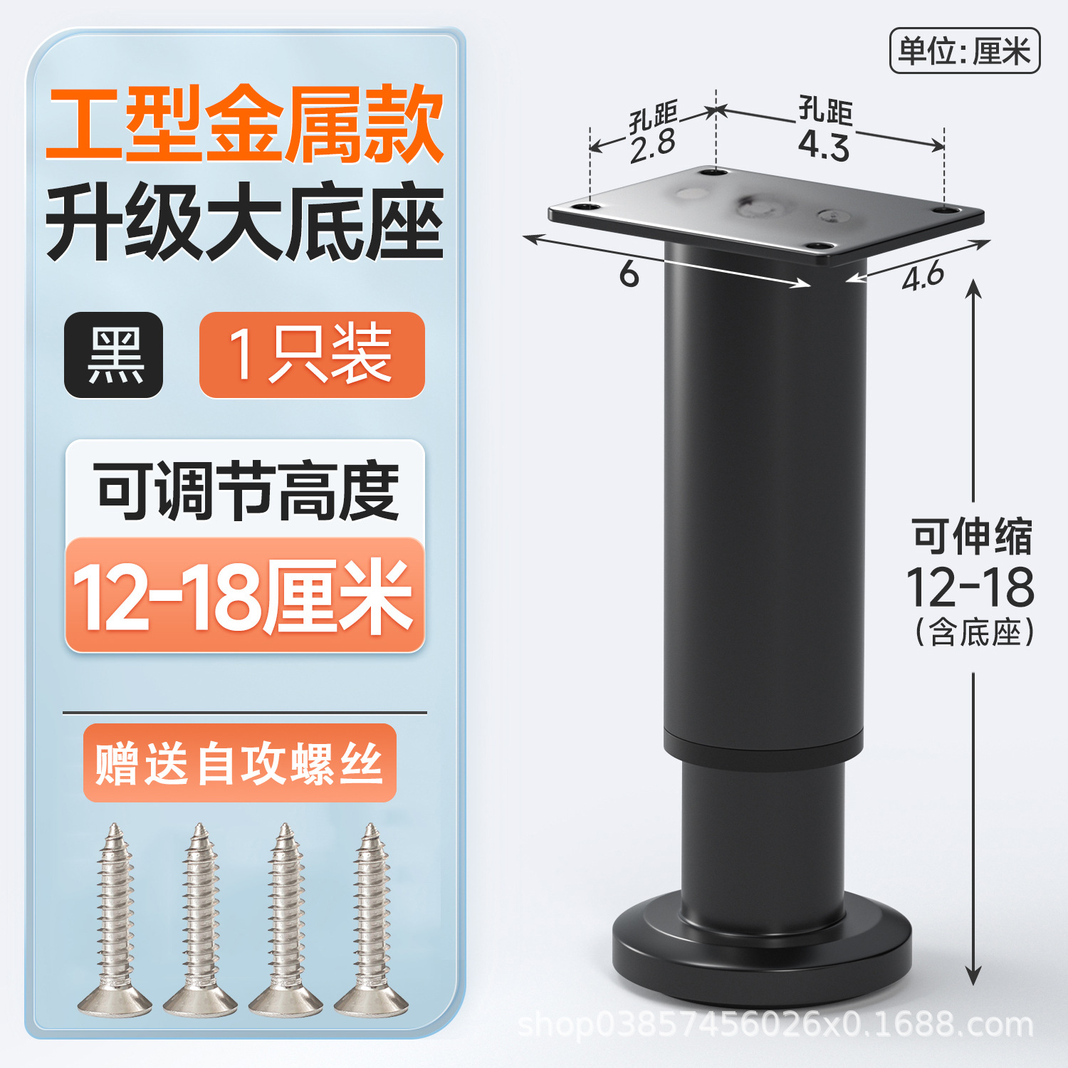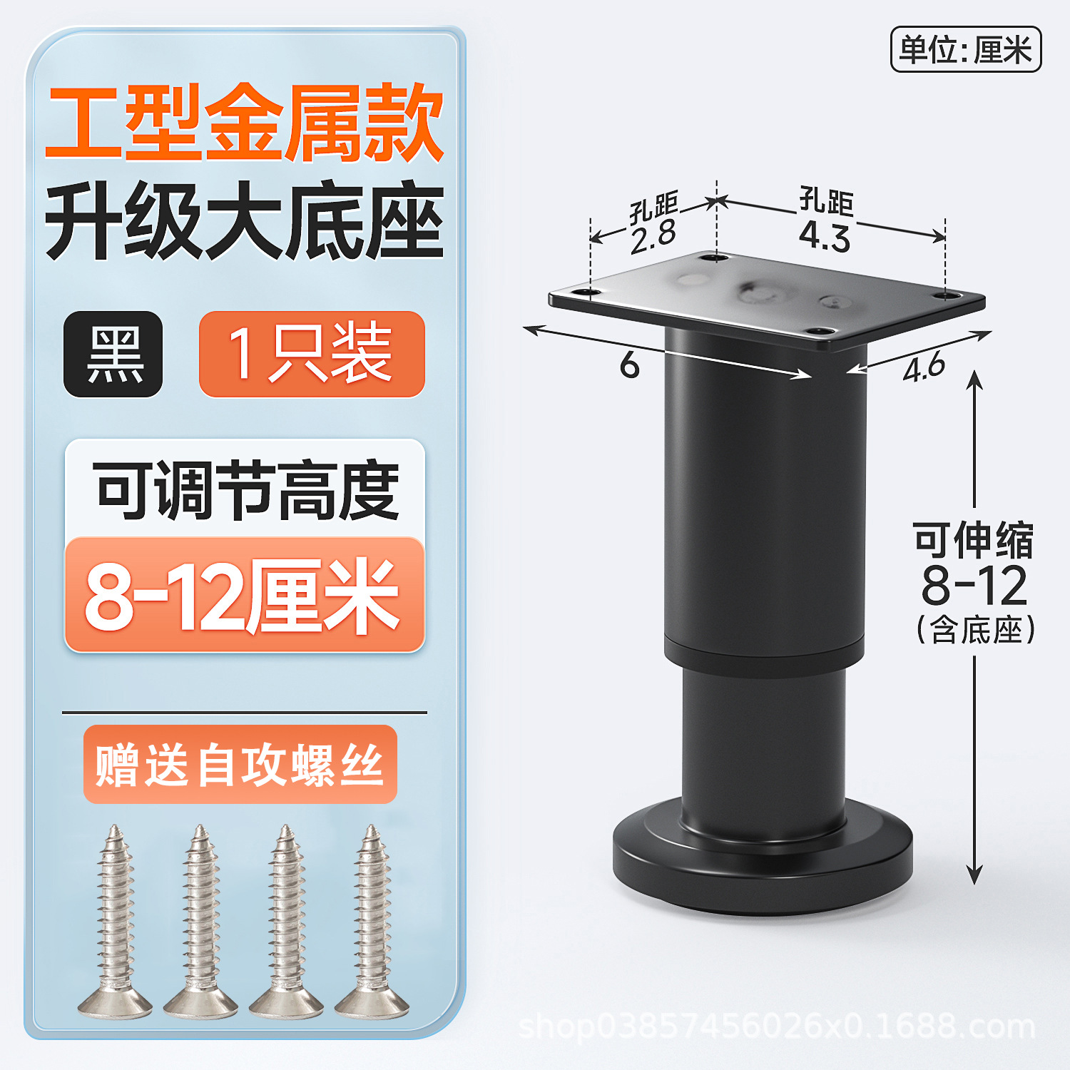 12cm [120-180mm] black [wide bottom telescopic feet] free screws