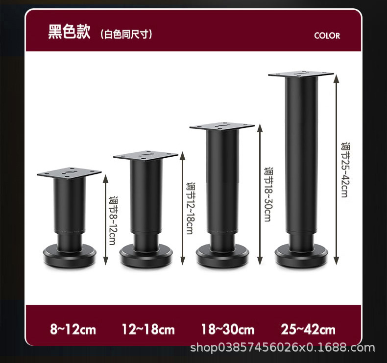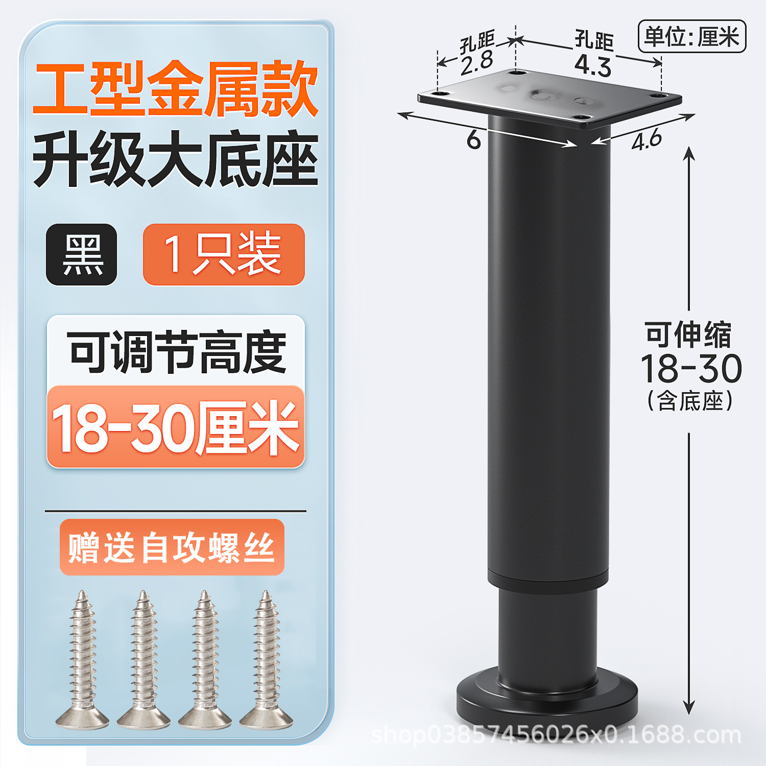 18cm [180-300mm] black [wide bottom telescopic feet] free screws