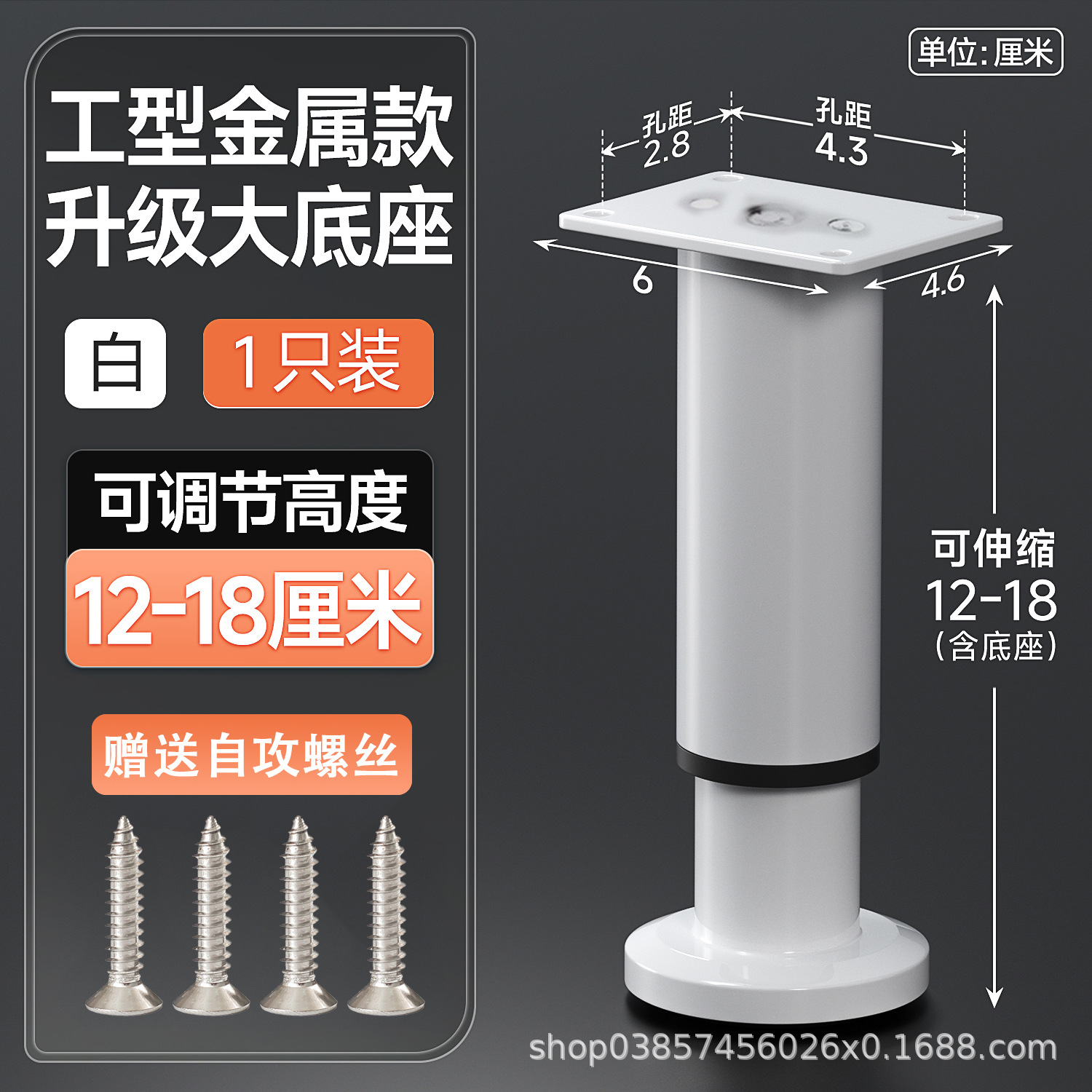 12cm [120-180mm] white【 wide bottom telescopic feet] free screws