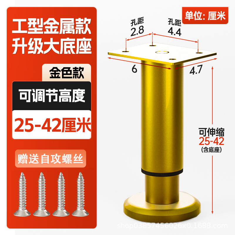 25cm [250-420mm] golden [wide bottom telescopic foot] with screws