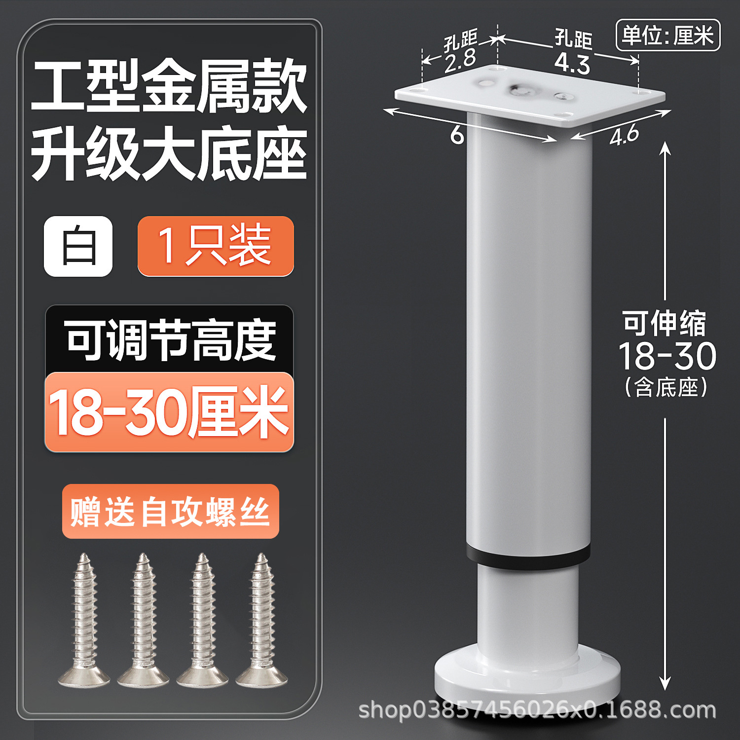 18cm [180-300mm] white【 wide bottom telescopic feet] free screws