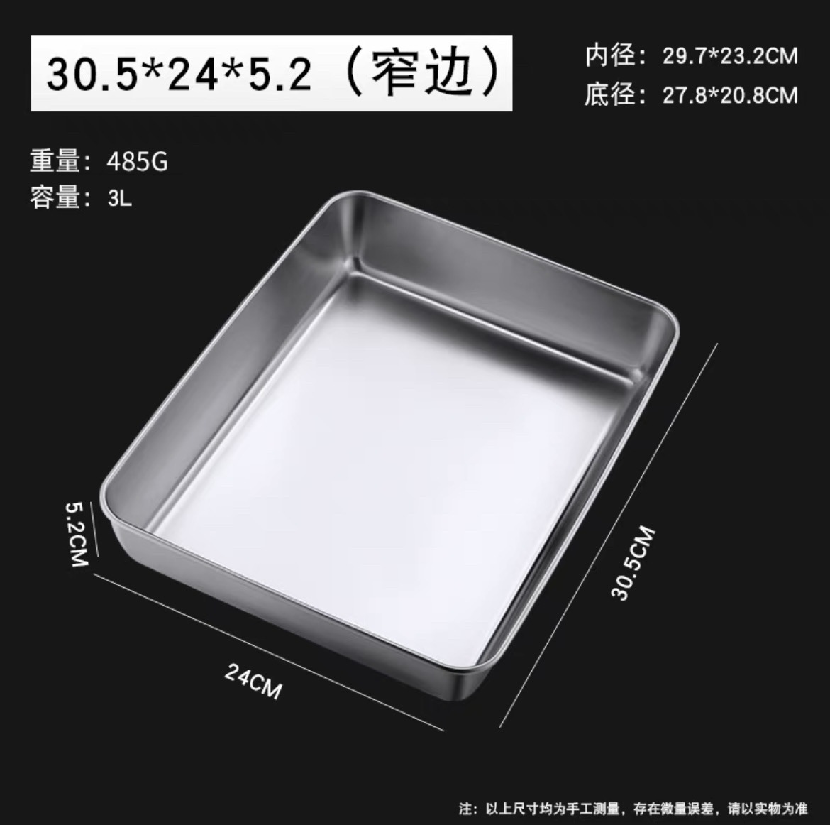 stainless steel plate 28.5 length × 22.5 width × 5.2 height