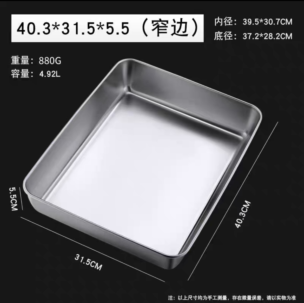 stainless steel plate 40 length × 31.5 width × 5.5 height