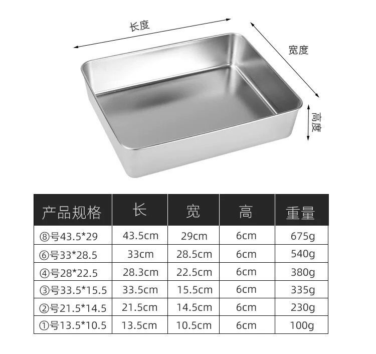 stainless steel plate 33 length × 28.5 width × 6 height