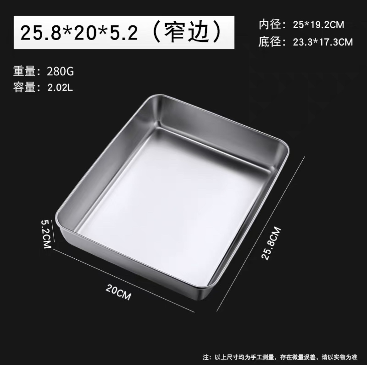 stainless steel plate 26 length × 20 width × 5 height